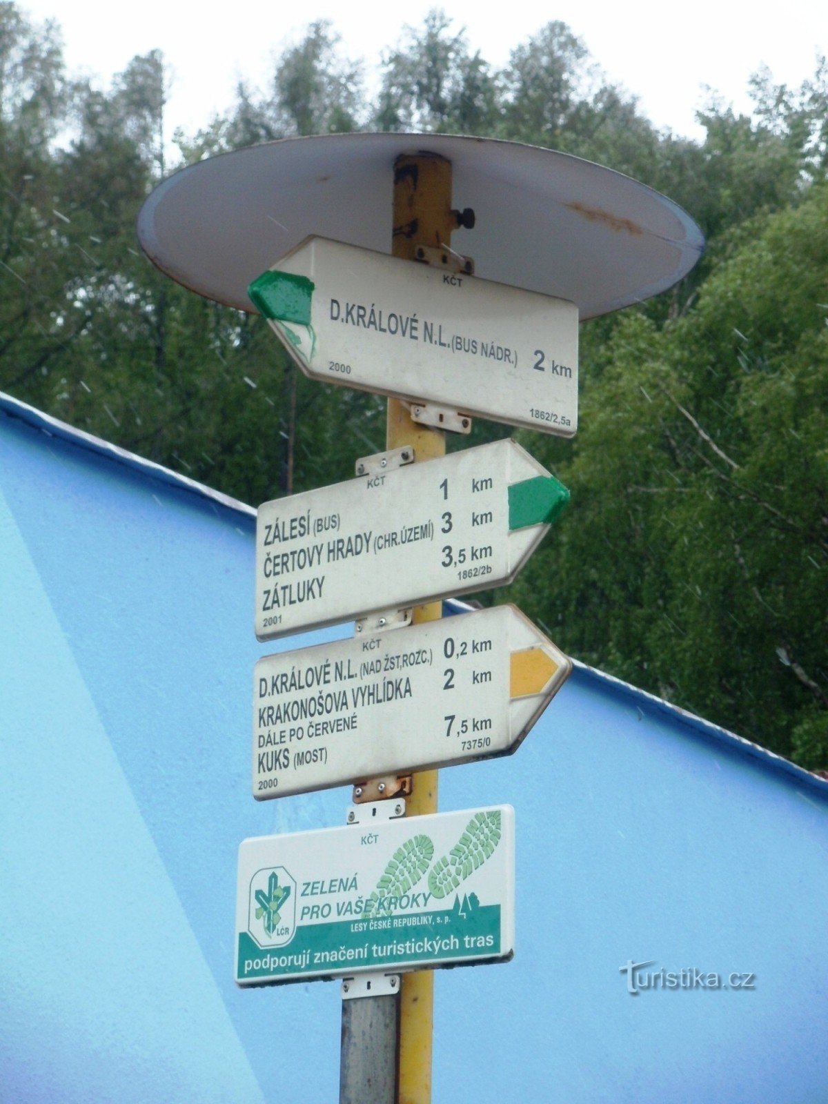 Turistický rozcestník, který se nachází železničního nádraží, ukazuje turistům cestu do dvou směrů. Po značce zelené ve směru Dvůr Králové bus. - Doubravice, Bílá Třemešná, Zvičina a po značce žluté také od železničního nádraží ke Krakonošově vyhlídce.
