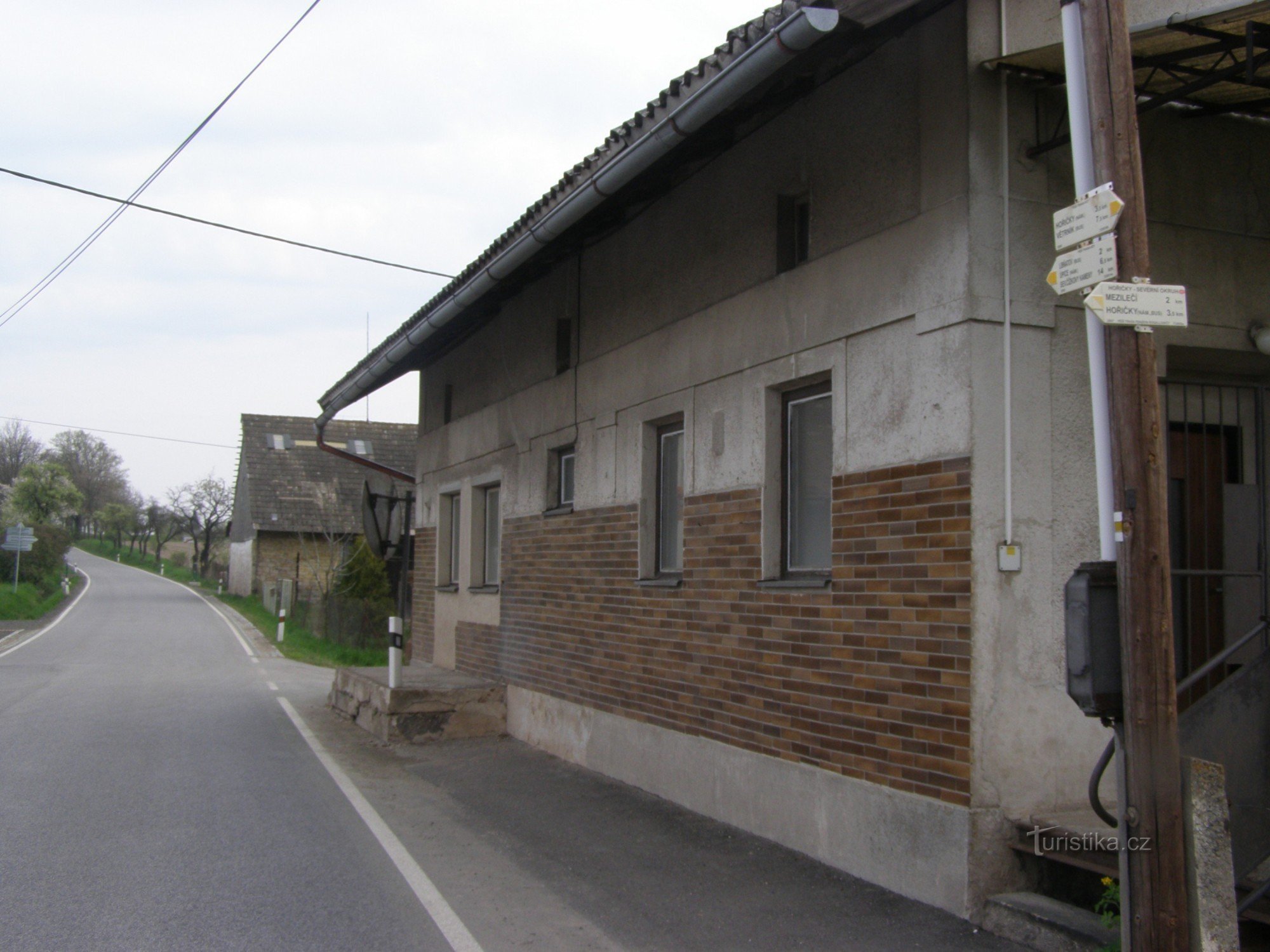 Turistický rozcestník, který se nachází u autobusové zastávky v obci Křižanov, ukazuje turistům cestu po žluté značce ve směru Větrník, Hořičky - Libňatov, Úpice, Čížkovy kameny. Samostatně je značen směr NS Hořičky - Severní Okruh.
