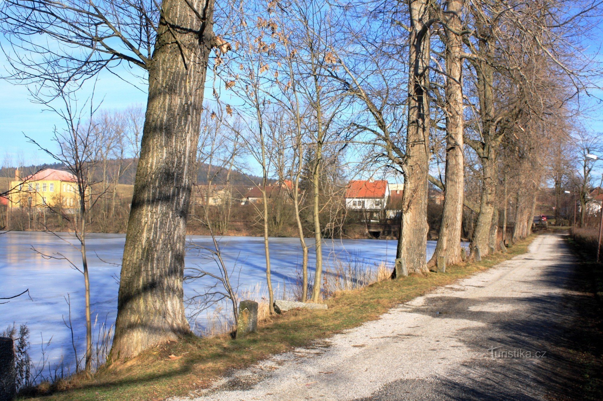 Nachází se v centru obce poblíž vlakového nádraží. Prochází tudy červeně a modře značená turistická cesta. Dálková červená značka vede jedním směrem na Sviny a do Velkého Meziříčí, druhým směrem na Svatou horu a do letoviska Podmitrov. Modrá značka pak jde jedním směrem na Osovou Bitýšku a Velkou Bíteš a druhým směrem přes Jabloňov, Tasov a Oslavu do Budišova.