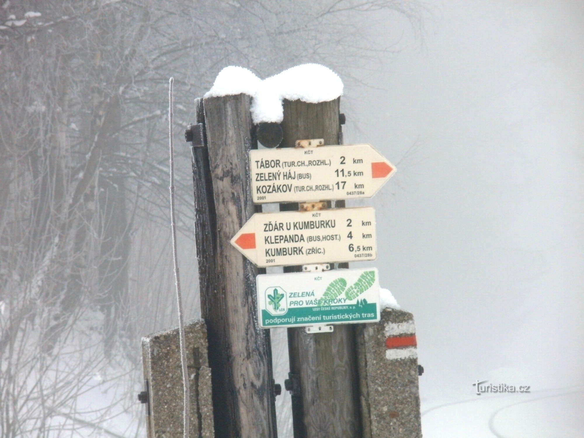 Turistický rozcestník, který se nachází nedaleko žst. Ploužnice, ukazuje turistům cestu po červené značce ve směru vrch Tábor - Klepanda a dále Nová Paka.