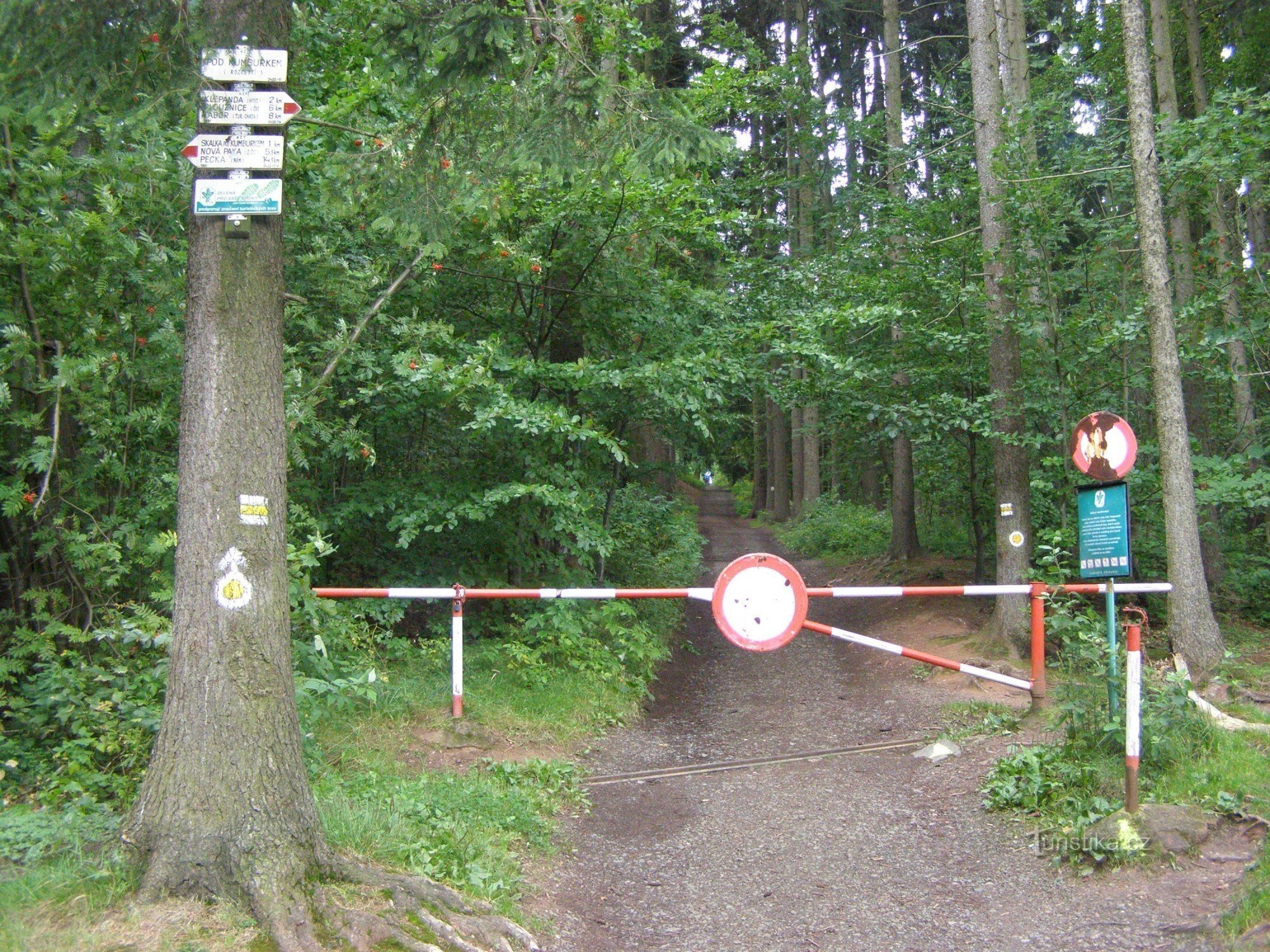 Turistický rozcestník, který se nachází severně, cca 300 metrů pod zříceninou hradu Kumburk, ukazuje turistům cestu do dvou směrů. Po červené značce ve směru Tábor, Ploužnice, Žďár u Kumburku, Klepanda - Skalka pod Kumburkem, Nová Paka a po značce žluté ve směru Syřenov žst - Zřícenina hradu Kumburk.