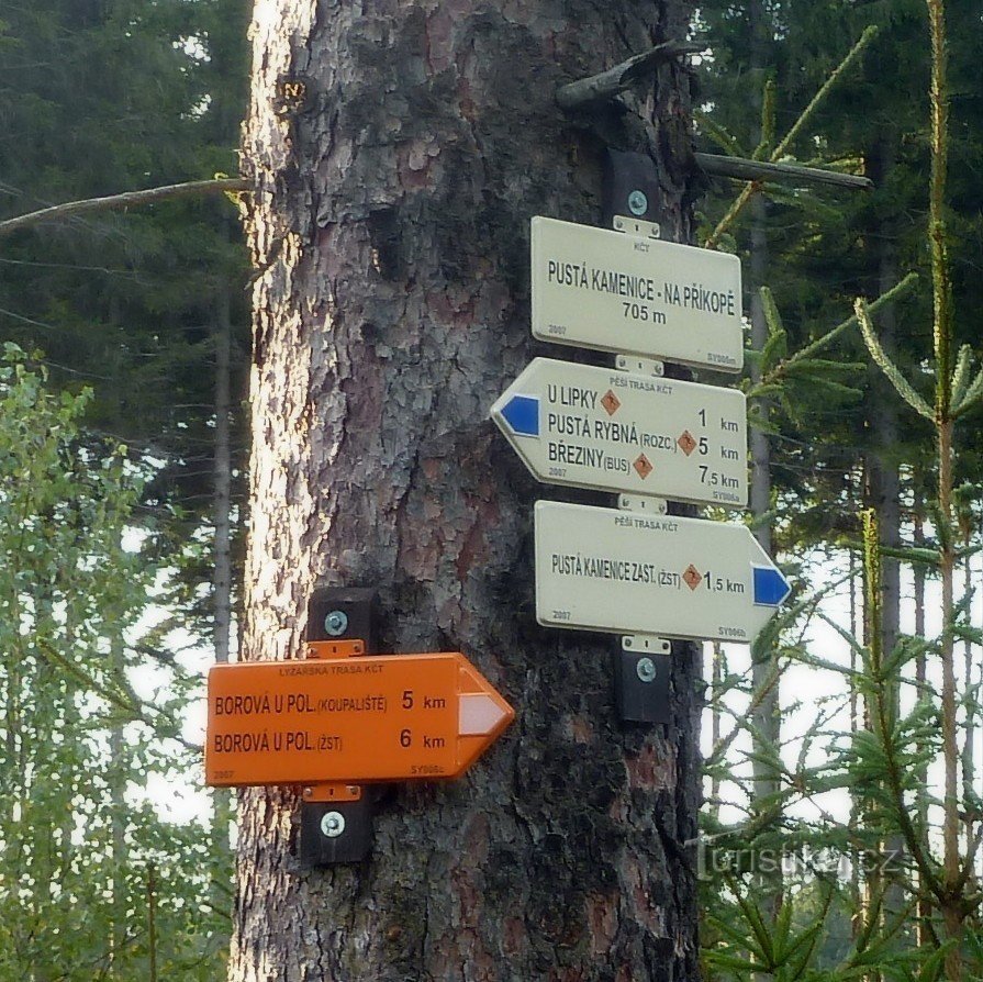 turistické rozcestí Pustá Kamenice - Na Příkopě