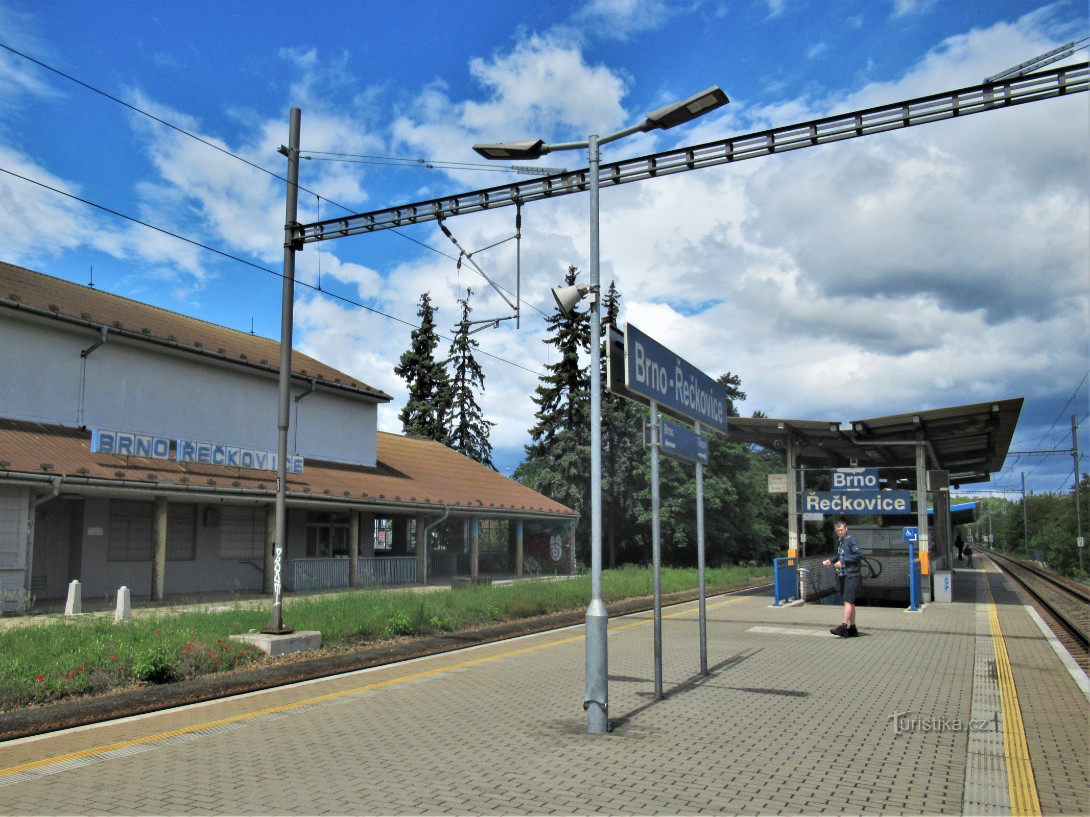 Turistické rozcestí se nachází poblíž nádražní budovy u průchodu pod tratí od průmyslového areálu. V něm je bezbariérový přístup k nástupištím vlaků. Ve stanici není pokladna pro prodej jízdenek. Rozcestím prochází modře značená turistická trasa. Ta vede jedním směrem ke končné tramvaje č.1 do horní části Řečkovic, kde začíná zeleně značená trasa směřující přes hřeben Baby do Jinačovic. Modrá od…
