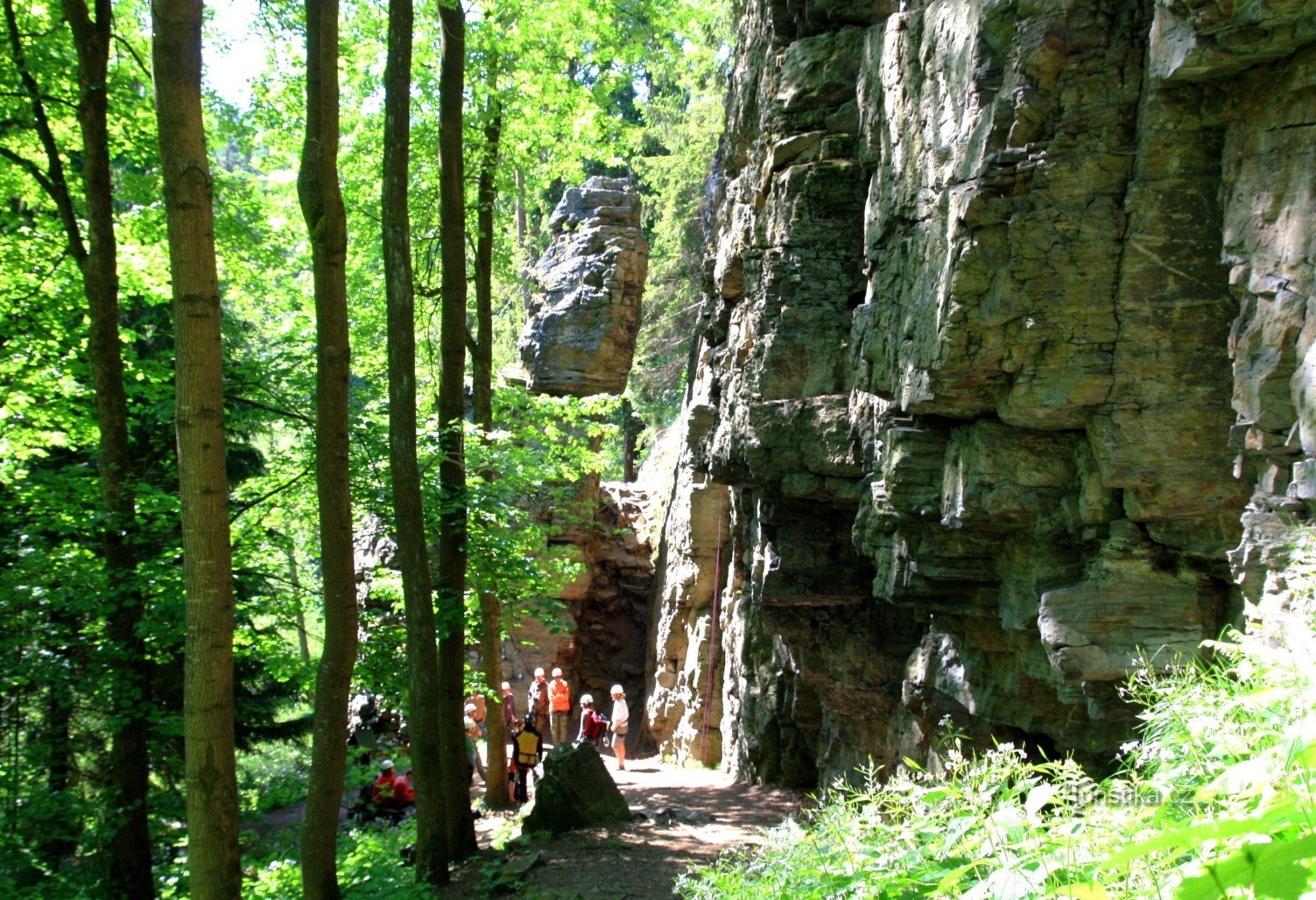 Nachází se pod rozložitým skalním masívem Rozštípené skály nad řekou Sázavou. Celý skalní masív je dnes vyhlášen za přírodní památku. Prochází tudy červeně a žlutě značená turistická cesta. Nejsnadnější přístup je po červeně značené cestě z Hamrů nad Sázavou.