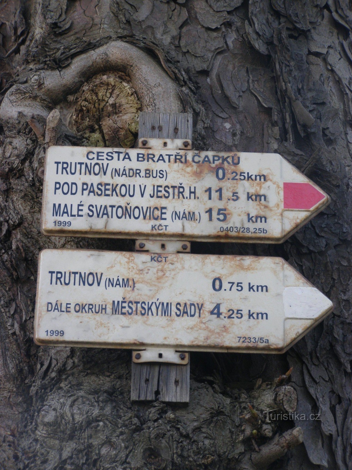 Turistický rozcestník, který se nachází v blízkosti Trutnovského nádraží, ukazuje turistům cestu po červené značce ve směru Pomezní boudy - Malé Svatoňovice, tato cesta je zvaná Cesta bratří Čapků. V místě se nachází i mapa města Trutnov.