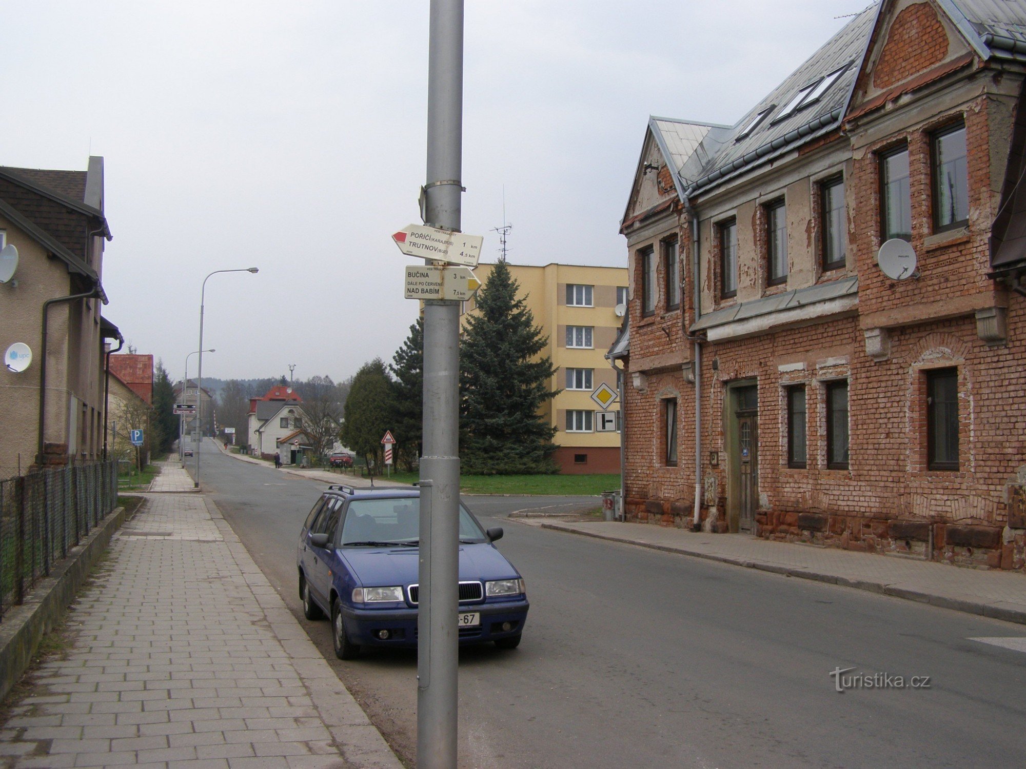 Turistický rozcestník, který se nachází ve Voletinské ulici nedaleko hříště v Trutnově – Poříčí, ukazuje turistům cestu do dvou směrů. Po červeně značené Cestě bratří Čapků ve směru Pomezní boudy - Malé Svatoňovice a po značce žluté ve směru Poříčí - Bučina.