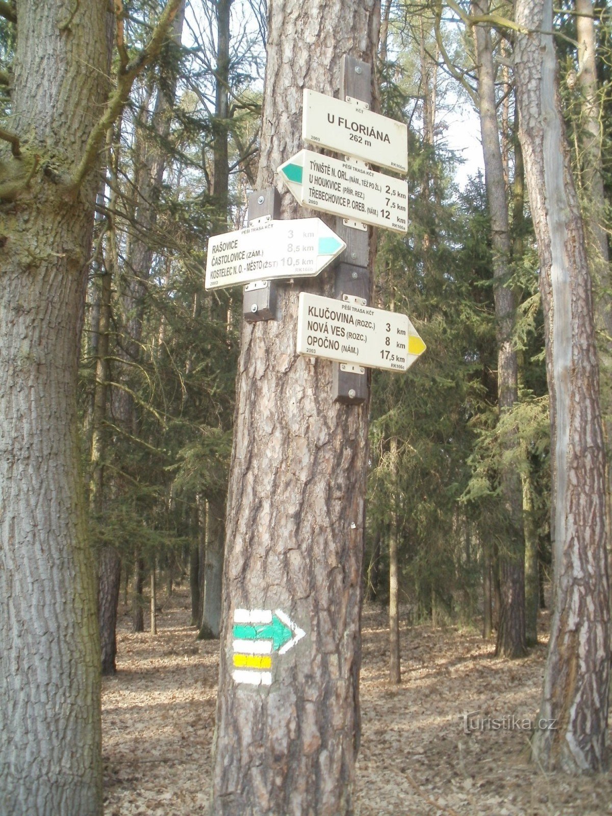 Turistický rozcestník u Floriána, který se nachází východně od Týniště nad Orlicí ukazuje turistům cestu ve dvou směrech. Po značce zelené ve směru ukazuje turistům cestu ve směru Třebechovice pod Orebem, Týniště nad Orlicí - Rašovice, Malý Chlum, Čestice, Častolovice, Kostelec nad Orlicí a po značce žluté ve směru Týniště nad Orlicí - Ježkovice, Nová Ves, Džiženské údolí, Malá Záhornice, Opočno.