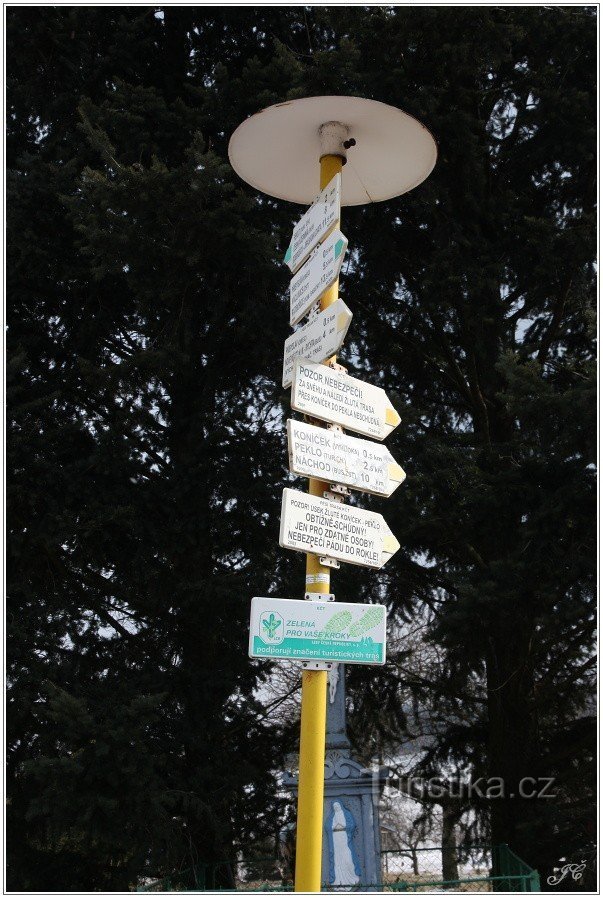 Turistické rozcestí najdeme na okraji obce. Procházejí tudy tyto značené trasy: