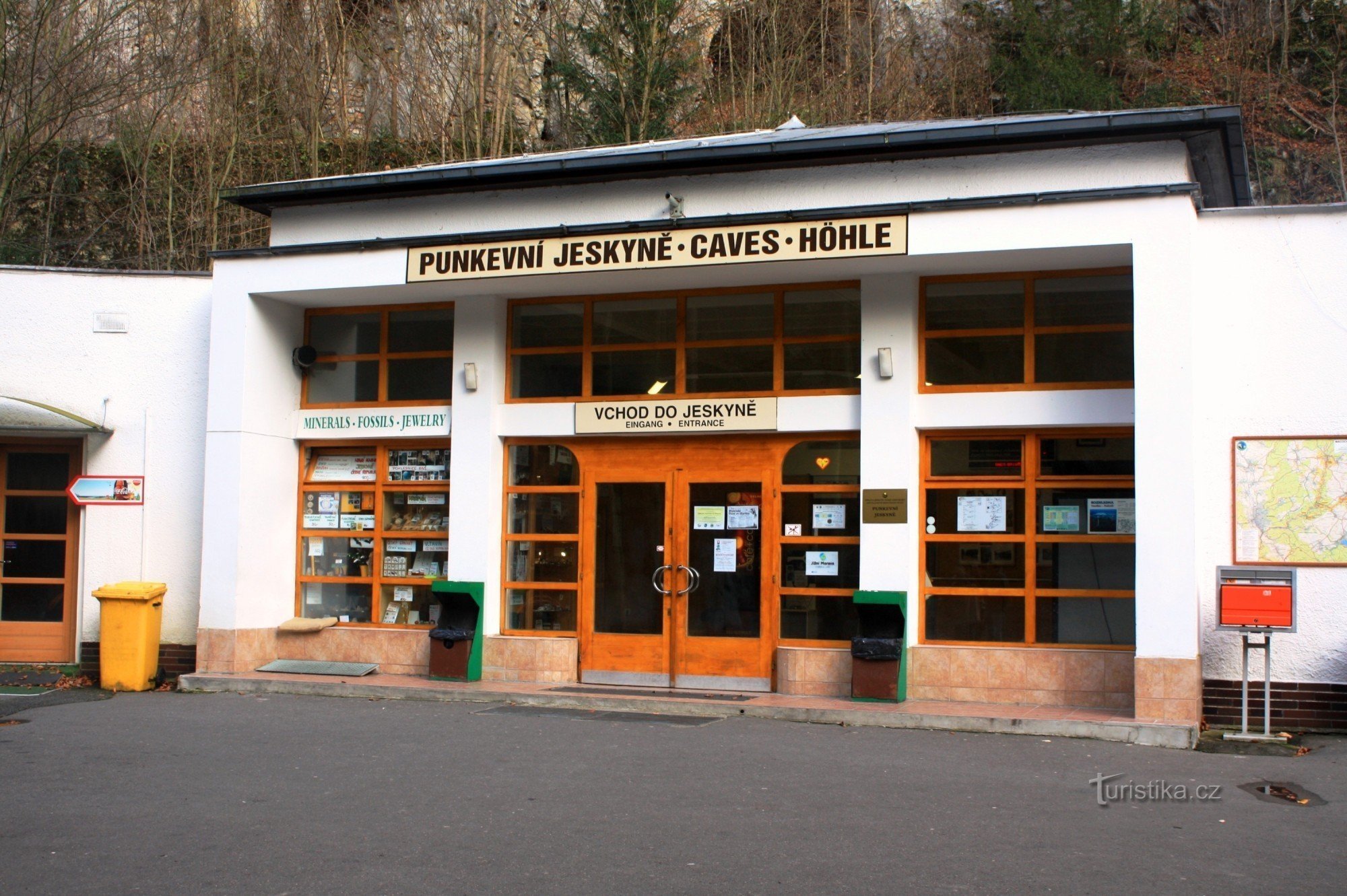 Nachází se před vstupem do Punkevních jeskyní na dně hlubokého vápencového kaňonu Pustého žlebu, které jsou nejvýznamnější zpřístupněnou jeskyní Moravského krasu. Naproti nad provozní budovou a výtokem říčky Punkvy se zvedá mohutná skalní stěna. Prochází tudy modře značená turistická cesta. Proti toku údolí vede modrá značka k rozcestí Pod Salmovkou, odkud serpentinami Salmovy stezky postupně…