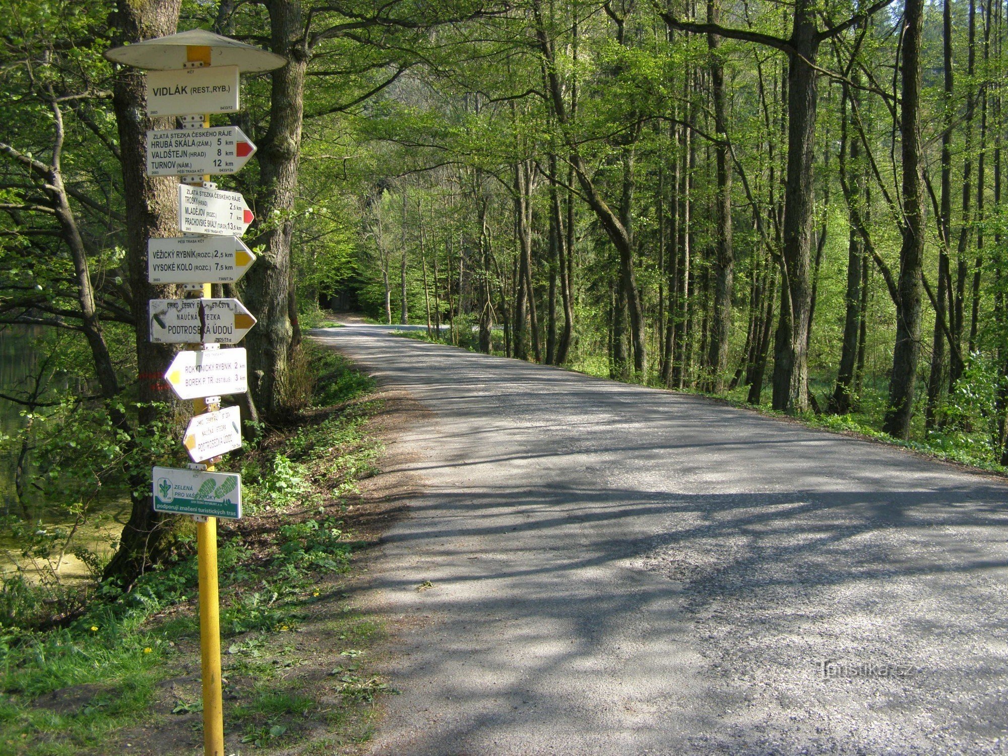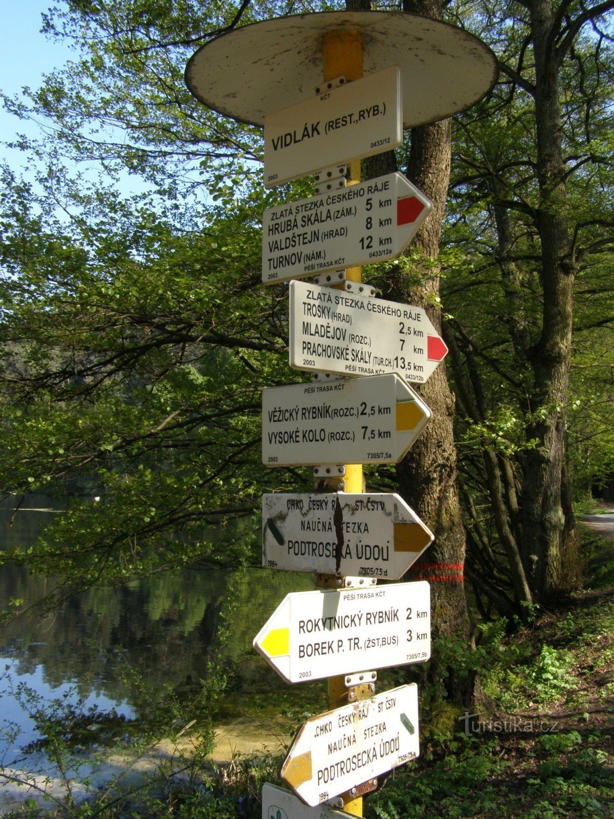 Turistický rozcestník, který se nachází u rybníku Vidlák, ukazuje turistům cestu do dvou směrů. Po červeně značené Zlaté stezce Českého ráje ve směru Turnov, Valdštejn, Hrubá Skála, Věžický rybník - Trosky, Svitačka, Dolní Mlýn, Mladějov, Prachovské skály a po značce žluté ve směru Příhrazy, Žehrov, Vysoké Kolo, Podvyskeřský mlýn, Údolí Žehrovky, Věžický rybník - Rokytický rybník, Borek pod…