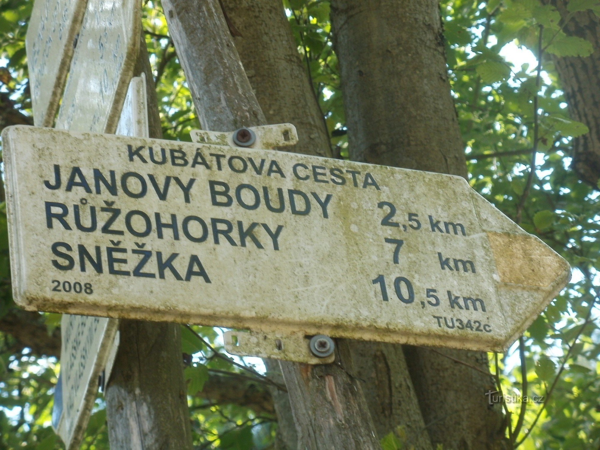 Turistický rozcestník, který se nachází u soutoku Úpy s Malou Úpou, ukazuje turistům cestu do dvou směrů. Po značce žluté ve směru soutok Úpy s Malou Úpou - Janovy boudy, Růžohorky, Sněžka a po značce modré ve směru Vlašské boudy, Vavřincův důl - Myslivna, Cestník, Pomezní Boudy.