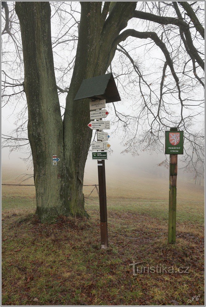 Turistické rozcestí leží uprostřed osady Závrchy v těsné blízkosti památné lípy a zvoničky. Procházejí tudy tyto turisticky značené trasy: