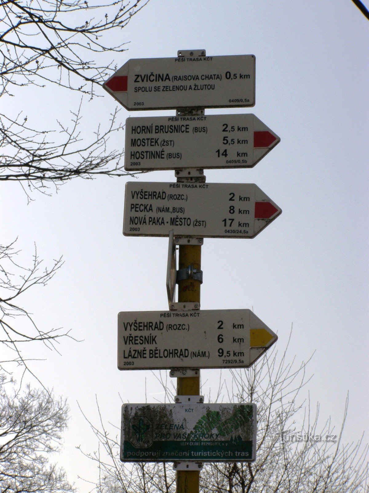 Turistický rozcestník, který se nachází v horní části obce Zvičina (západně od vrcholu Zvičiny), ukazuje turistům cestu do více směru. Po značce žluté ve směru Zvičina Raisova chata - Vyšehrad, Borek, Vřesník, Lázně Bělohrad bažantnice, Byšičky, Černín, Hořice, po značce zelené značce ve směru Miletín, Chroustov - Zvičina, Perná, Bílá Třemešná, Zátluky, Doubravice, Dvůr Králové žst a po značce…