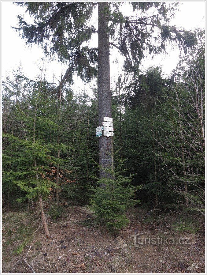 Rozcestí zelené a červené tur. značky se nachází jihovýchodně od města Vamberk v orlických horách. Nedaleko se vyskytuje vesnice Merklovice.