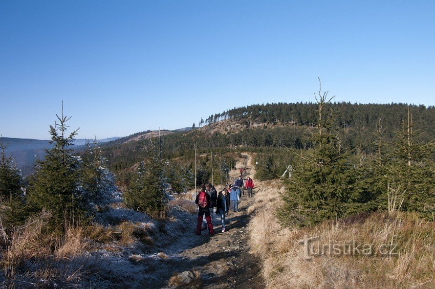 U Výrovky je dvojité rozcestí turistických značek, které se vlastně přímo nestýkají, ale je mezi nimi tak krátká vzdálenost, že vytváří zajímavou křižovatku pro ulehčení cesty, či odbočení na výhodnější trasu. Najdeme je mezi vrcholy Výrovky a Malého Jezerníku na cestách mezi Červenohorským sedlem a Švýcárnou. Jeden směrovník najdeme na červené značce, čili hřebenovce od sedla na Jezerníky a…
