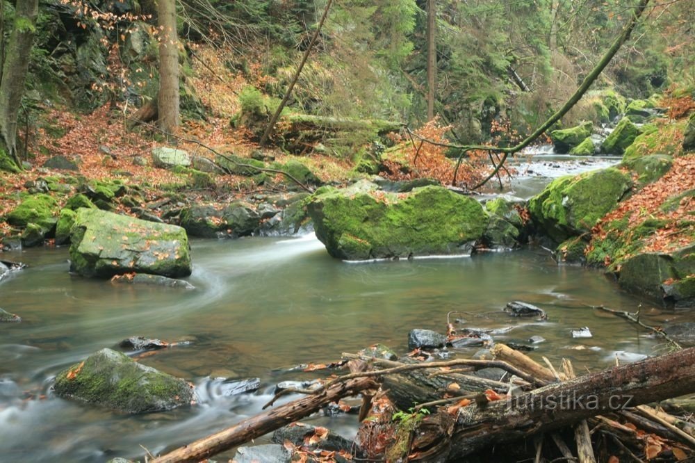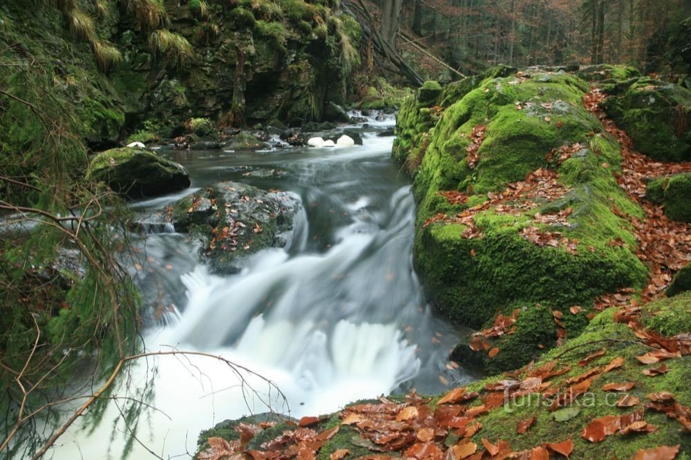 parkoviště Horní Sokolovec - údolím Doubravy po červené značce - zřícenina Sokolovec - a lesní cestou zpět k parkovišti. Kousek proti proudu od rozcestí pod Sokolohrady je vodopád na říčce Doubravě