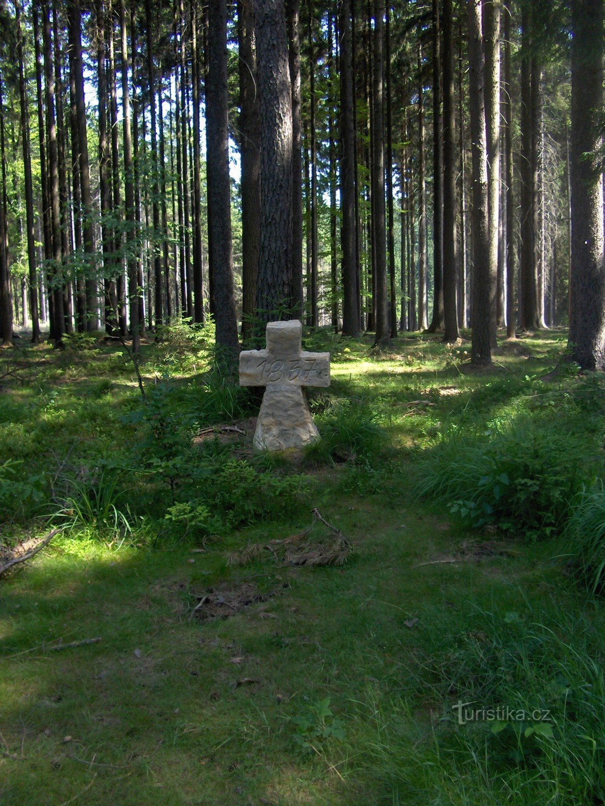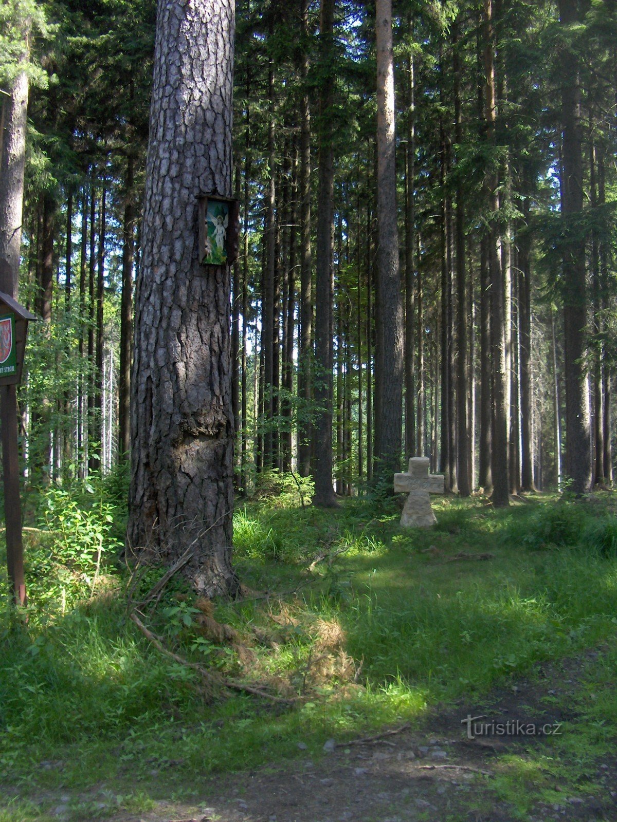 Při příchodu na rozcestí upoutá pozornost nový smírčí kříž, který je v blízkosti mohutné borovice. V…