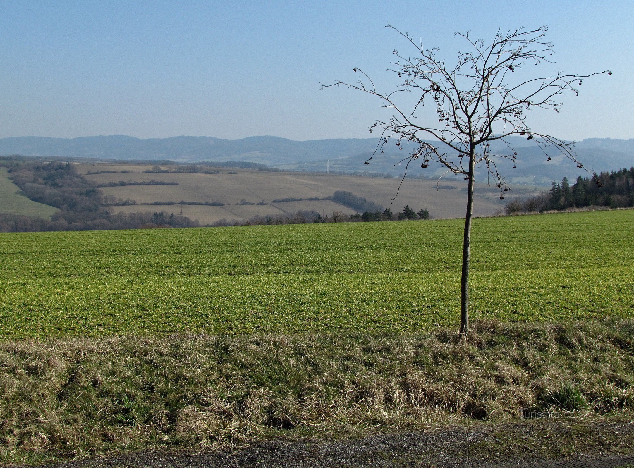 Vesnici s tímhle sympatickým názvem naleznete mezi Slušovicemi a Klečůvkou. Zajímavé je, že se po vzoru vzdálené Vysočiny hezky uvelebila (a poté rozložila) okolo temene nezalesněného kopce. Díky poloze jsou z ní hezké výhledy na okolní Vizovické a Hostýnské vrchy. Možná, že si těchto výhledů kdysi užívali i pravěcí lovci, ale bohužel nám o tom - kromě několika pazourkových nástrojů - nezanechali…