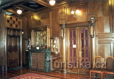 Prostorná hala v přízemí s původním zdobným…
