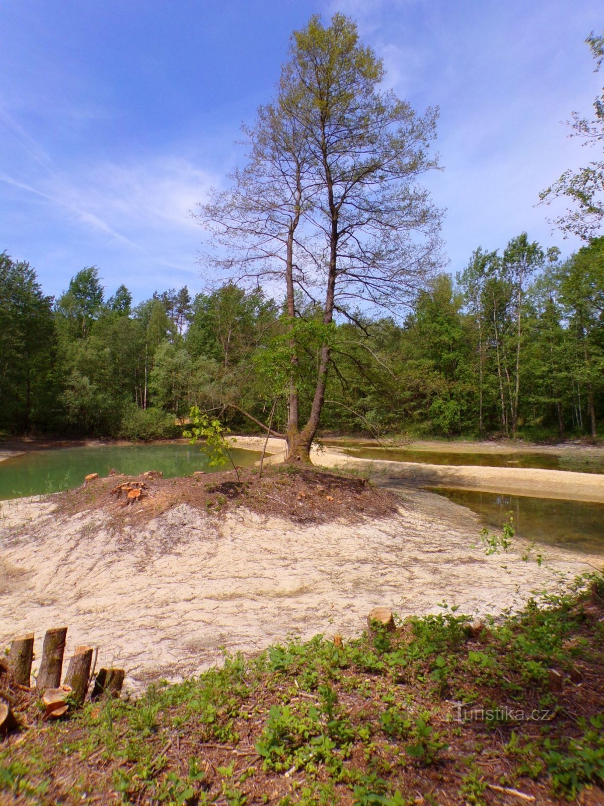 V těchto místech původně bývala pole a pastviny, což můžeme zjistit nahlédnutím do indikační skici stabilního katastru z roku 1840 od adjunkta 2. třídy Quido Johanna Zelleria a geometra 4. třídy Antona Calvase (viz https://ags.cuzk.cz/archiv/openmap.html?typ=skicic&idrastru=HRA050018400). Později se zde delší dobu těžily štěrkopísky (viz https://ags.cuzk.cz/archiv/openmap.html?typ=topo1952…