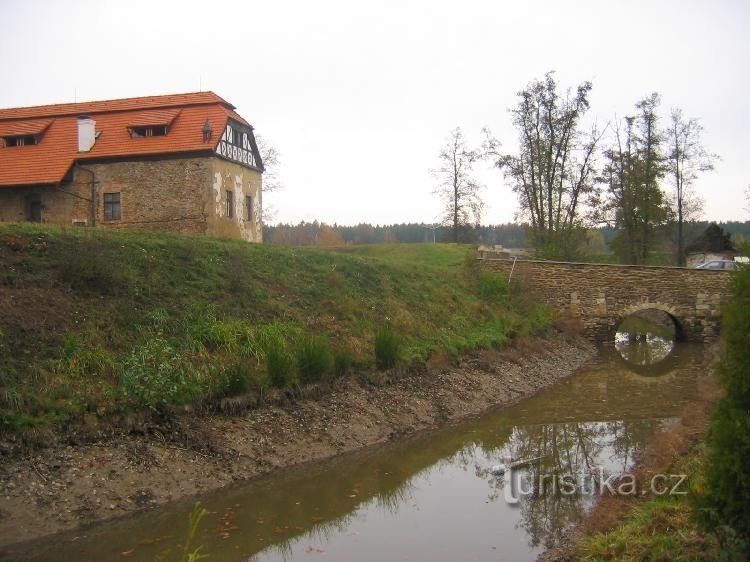 Zachovalé Zbytky tvrze ,s vodním příkopem.