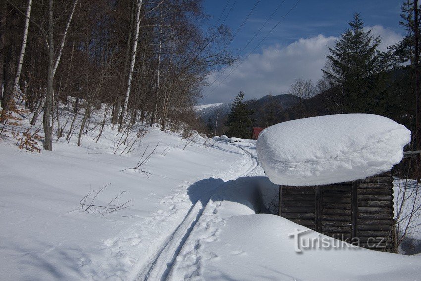 Vodní cesta je jednou z možných výstupových tras pro běžkaře z Koutů na Červenohorské sedlo (samozřejmě i sjezdových). Jako jedna z mála tras v Jeseníkách je vyznačena speciální značkou Kčt tedy jako lyžařská trasa. Ta se od běžného značení vyznačuje tím, že postranní pruhy kolem vedoucí barvy nejsou bílé, ale oranžové, jinak se zvlášť neliší od běžné turistické značky, rozměrově je stejná, proto…