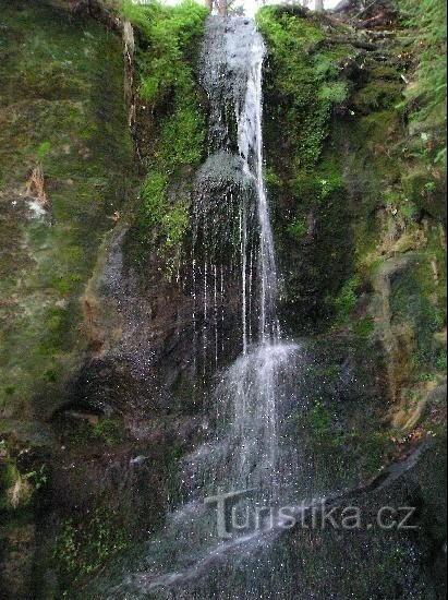 Vodopád na Lučním potoce byl uměle vytvořen místním turistickým spolkem koncem 19.století. Nachází se asi v polovině silnice mezi Mlýny a Křížovým bukem.