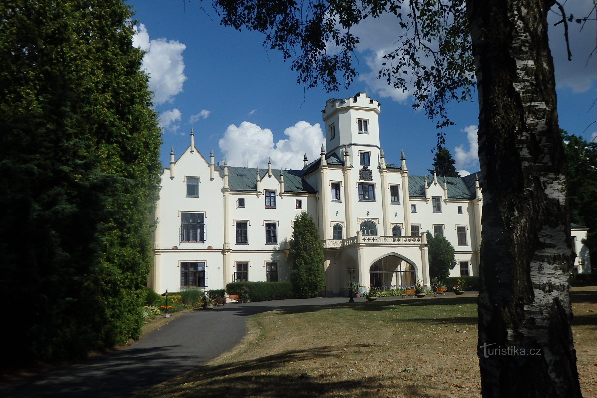 Před zámkem jsme objevili rozcestník s mnoha vycházkovými okruhy. Z nabídky…
