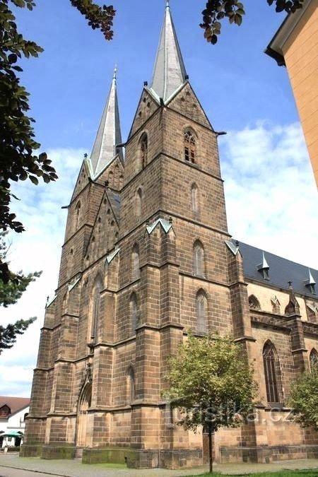 Svou mohutností tvoří dominantu města. Původně raněgotická stavba prošla několika přestavbami. Současná podoba je výsledkem puristické rekonstrukce koncem 19. století vedené F. Schmoranzem a J. Mockerem. Uvnitř monumentální barokní oltář s originálem obrazu P. Brandla Nanebevzetí P. Marie z roku 1728, gotická socha vysokomýtské Madony z počátku 16. století a cínová křtitelnice z roku 1499. V…