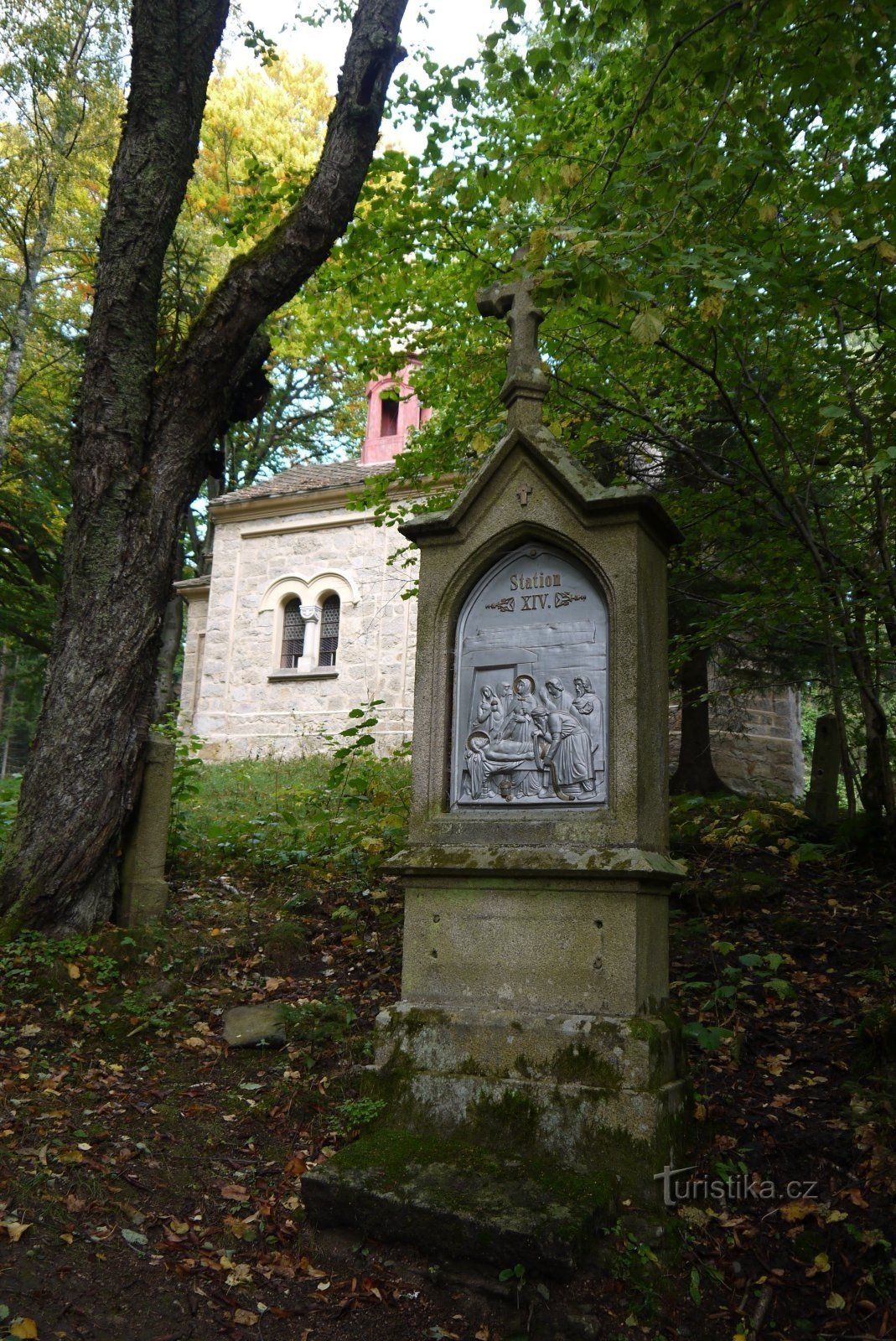 Z náměstí ve Vyšším Brodě jdeme po zelené značce, kde po 900 metrech přijdeme k prvnímu zastavení křížové cesty (N 48°36.723 E 014°18.173). Cesta je 900 metrů dlouhá a končí čtrnáctým zastavením ve výšce 770 m n.m. u kaple (N 48°36.488 E 014°17.742). Za Vyšším Brodem směrem na Martínkovský vrch stojí křížová cesta, která končí u kaple Odpočinutí Panny Marie na skále / Maria Rast am Stein. Kaple…
