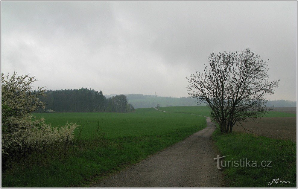 Trasu začínáme v Javornici, ale dá se absolvovat s mírným protažením i z Rychnova nad Kněžnou. Z centra Javornice od školy se vydáme po zelené značce nad obec (foto 1) a pohodlnou polní cestou (foto 2 - opět jeden výlet v dešti) dojdeme do Bělé (foto 3). Následuje úsek lesem podél Bělského potoka na rozcestí s červenou. Obě značky pak spolu pokračují (foto 4) k zájezdní restauraci Kovárna. Odtud…