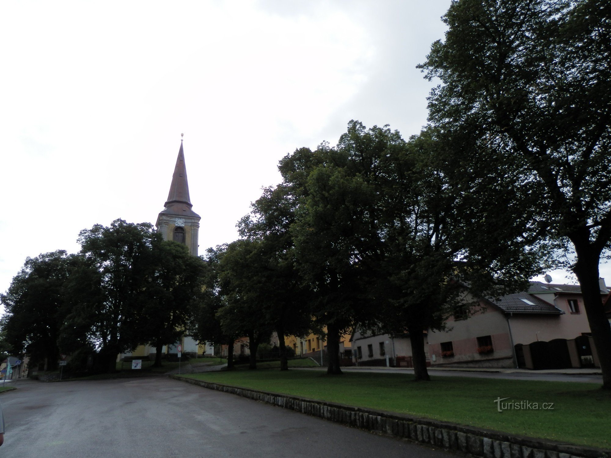 Z rozkopaného náměstí v Trhové Kamenici, kde jsme marně hledali i turistický rozcestník, jsme se vydali po žluté značce naštěstí správným směrem, vzhůru kolem kostela a hřbitova do lesů.