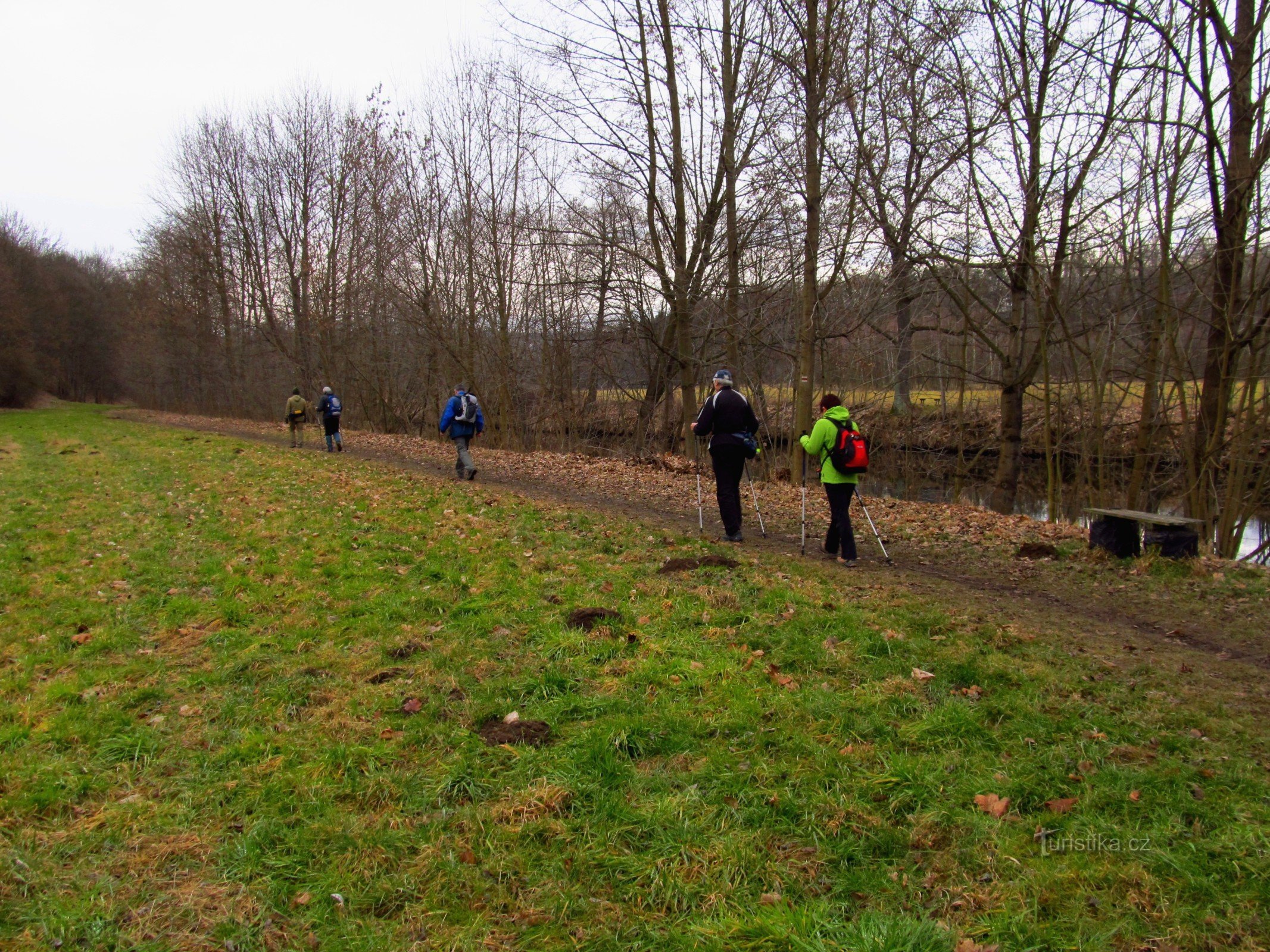 Vystupujeme na nádraží v Turnově, jdeme po žluté turistické a před mostem přes Jizeru se dáváme doleva po červené podél řeky směrem na Hrubý Rohozec.