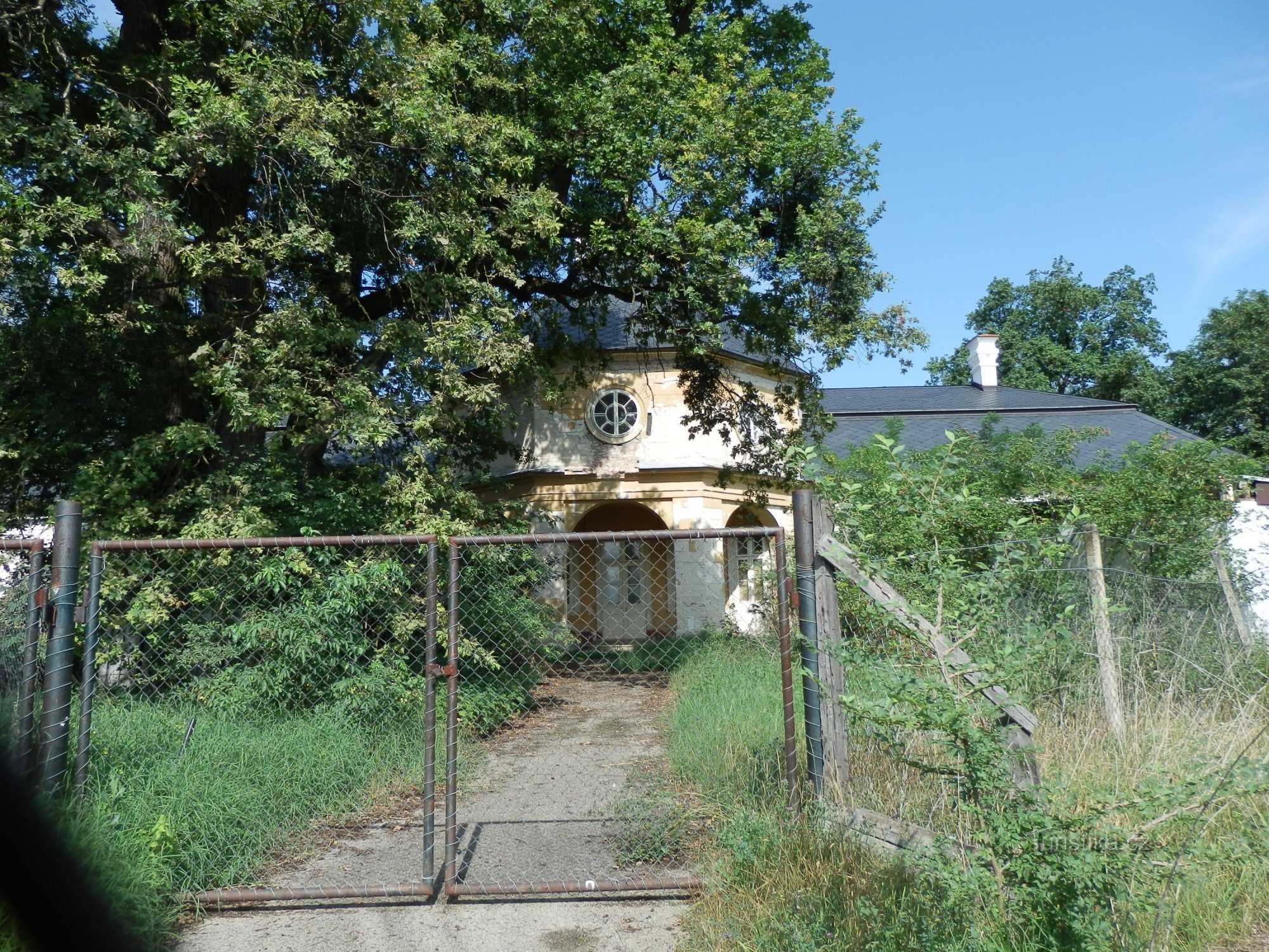 Půjdeme sice po červené značce, ale můžeme si udělat malou zacházku k jednomu z méně známých – a v současné době také nepříliš reprezentativních – objektů, zámečku Belveder.