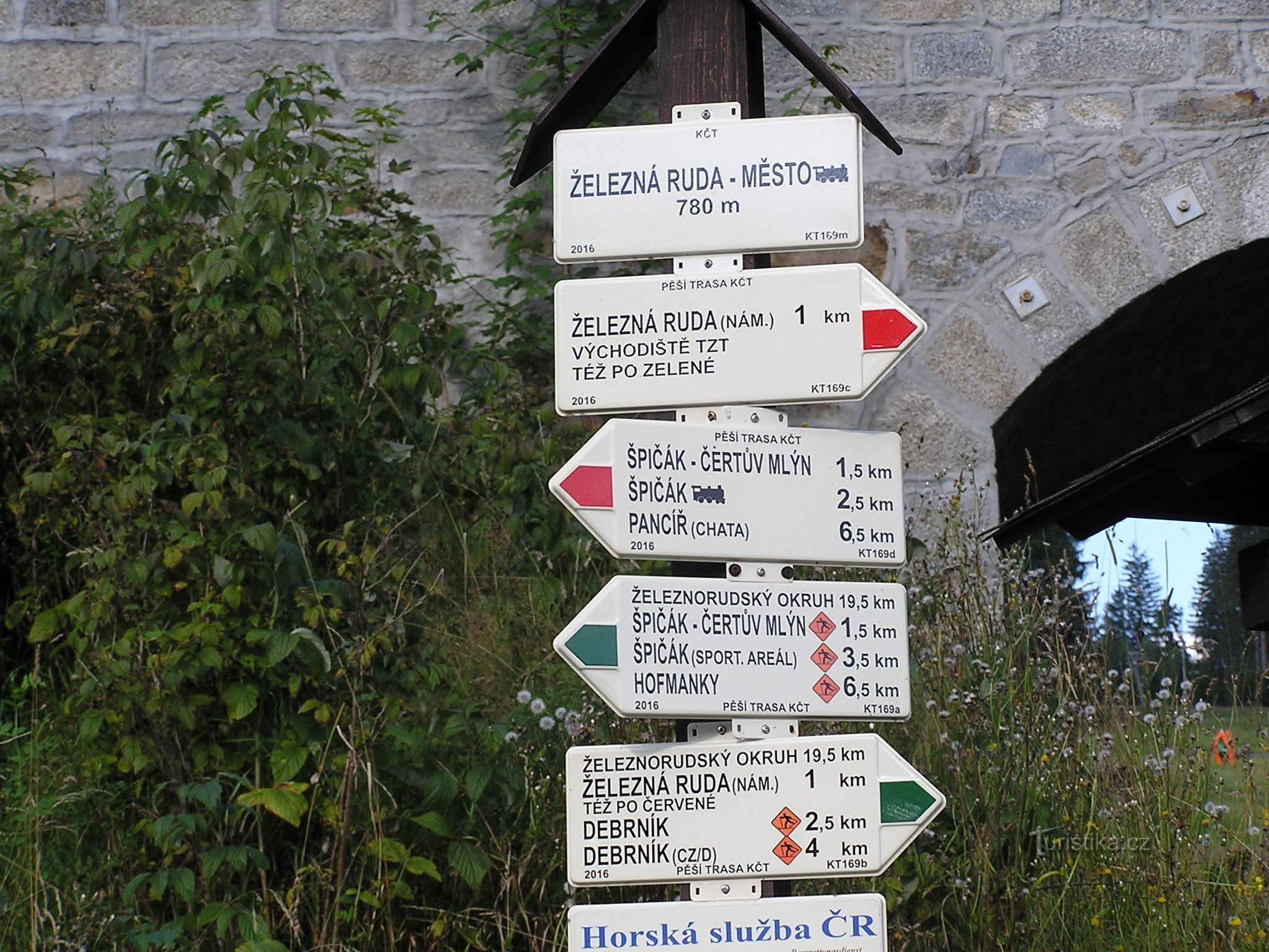Z železniční stanice Železná Ruda město po zelené značce, přes pohřebiště "Barabů", na Špičáku lze odbočit na sjezdovku po levé straně a tím si zkrátit cestu. Dále pokračovat po žluté až k Čertovu jezeru.