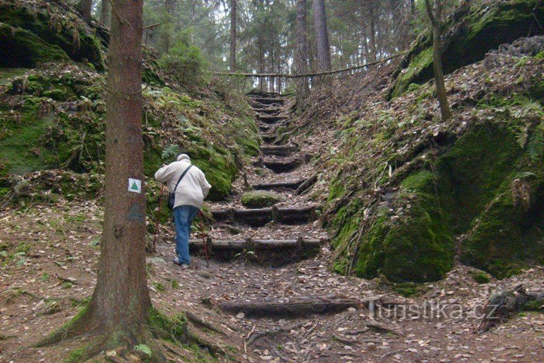 Druhou trasu nazveme K JESTŘEBICKÁM POKLIČKÁM. Výchozím bodem nám bude zelená značka která nás povede od Mšenských lázní lesoparkem Debř až k hájovně na Romanově. Odtud se dáme s části zapomenutou Pivovarskou cestou z které odbočíme prudkým sestupem do hluboké Boudecké rokle. Ve stráních nás po celou dobu doprovázejí po obou stranách mohutné skalní útvary a v půli cestě neviditelné partyzánské…