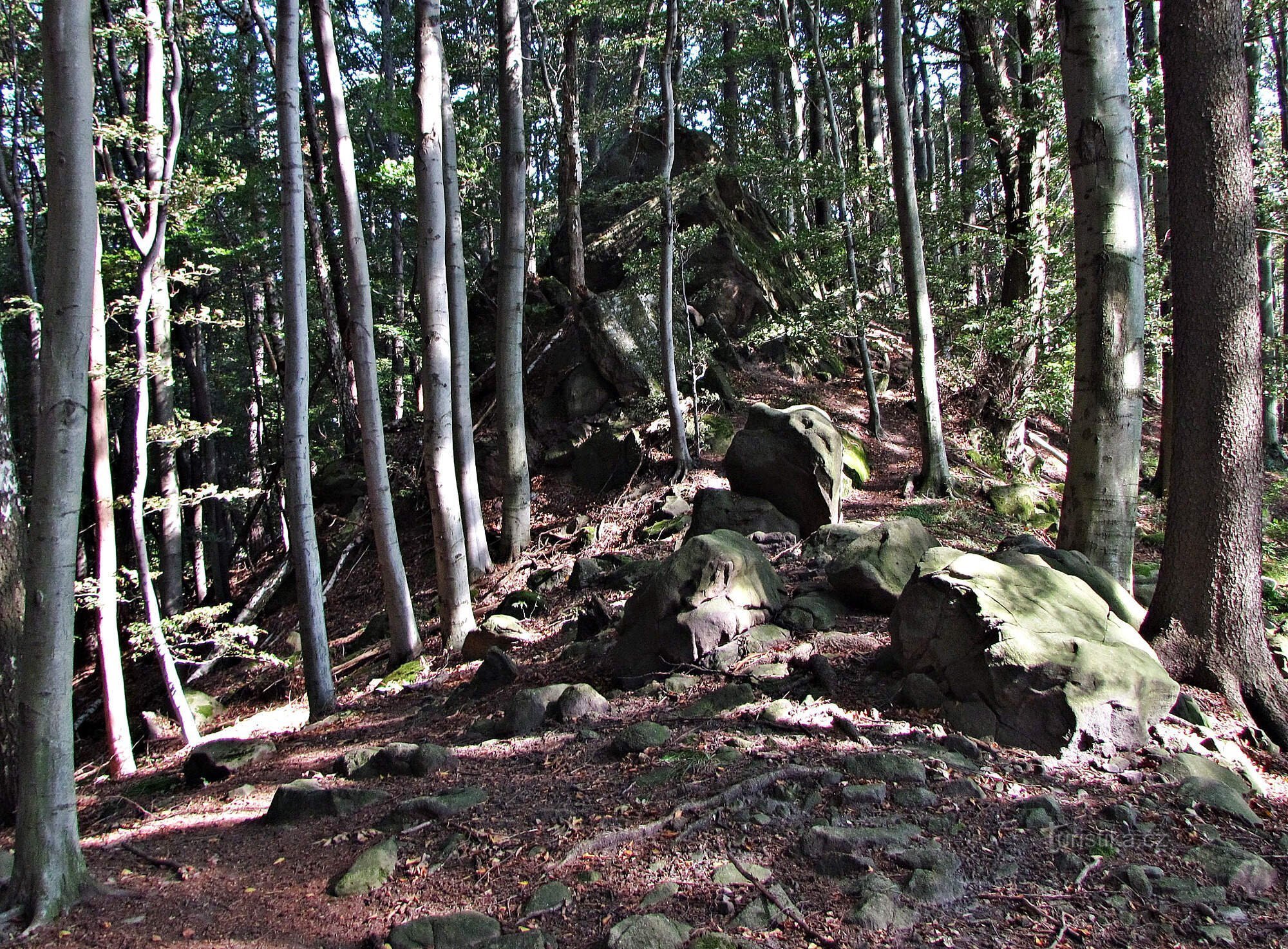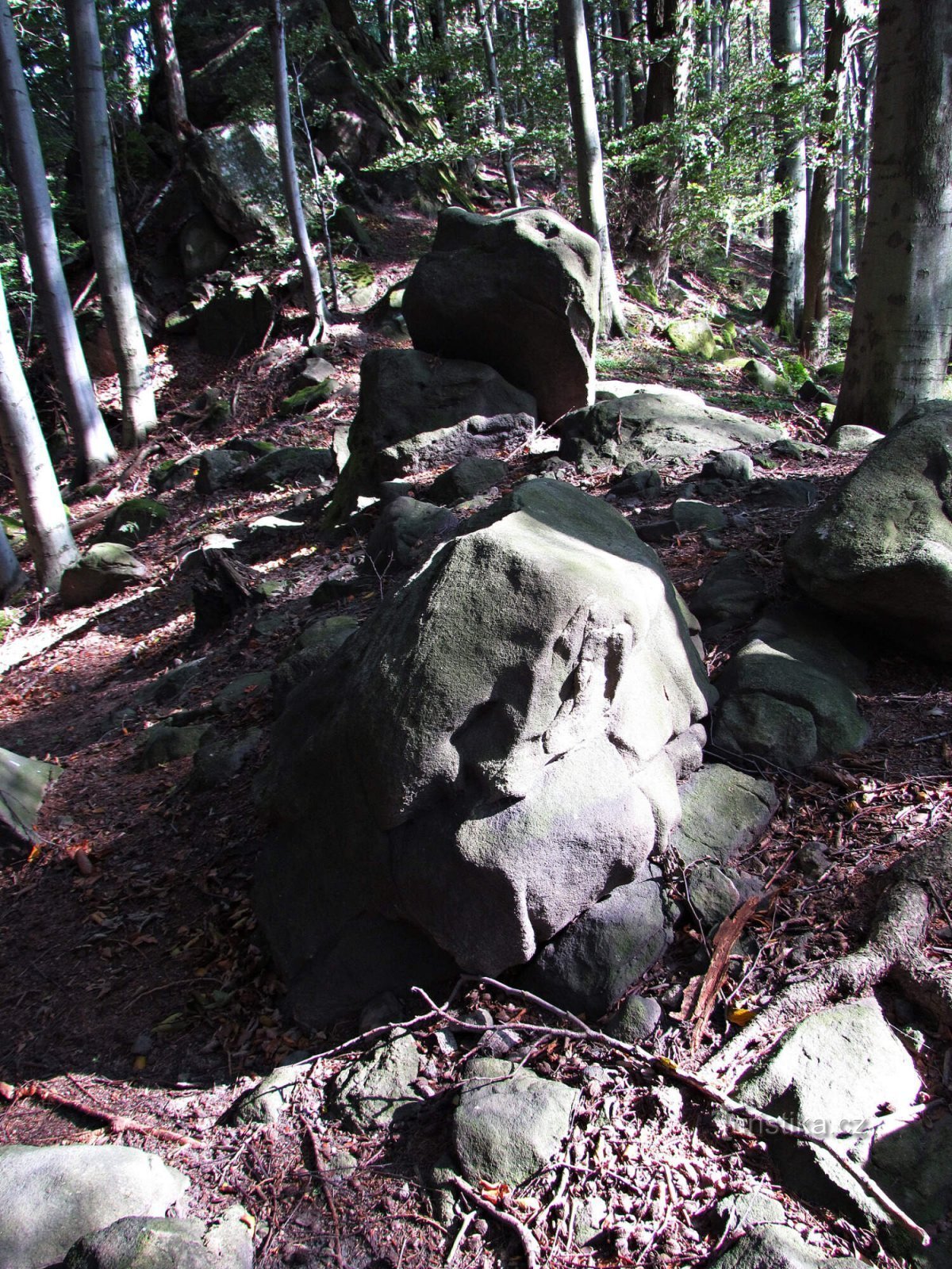 Z jeho středu se ke korunám lesních stromů vypíná ústřední (leč poněkud nevzhledné) skalisko dosahující výše asi šest metrů.…