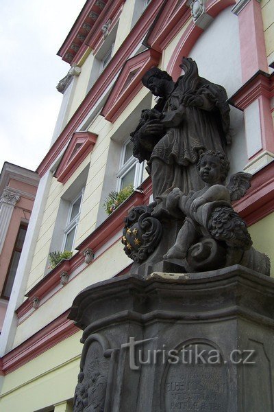 Zajímavý měšťanský dům č.202 se sochou sv.Jana Nepomuckého v Oseku.