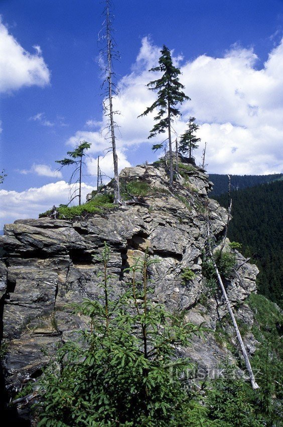 Jediný článek na Turistice pouze lakonicky oznamuje že se jedná o rozcestí. Ve skutečnosti se jedná o horu, nebo spíš boční vrchol. Najdeme je na severní rozsoše Velkého Máje (1384) u hlavní hřebenovky Hrubého Jeseníku. V podstatě přímo na sever od vrcholu Velké Májové vybíhá hřebínek, který od sebe odděluje údolí Zámeckého potoka na západě a na východní straně Medvědí žleb, kterým by měl…