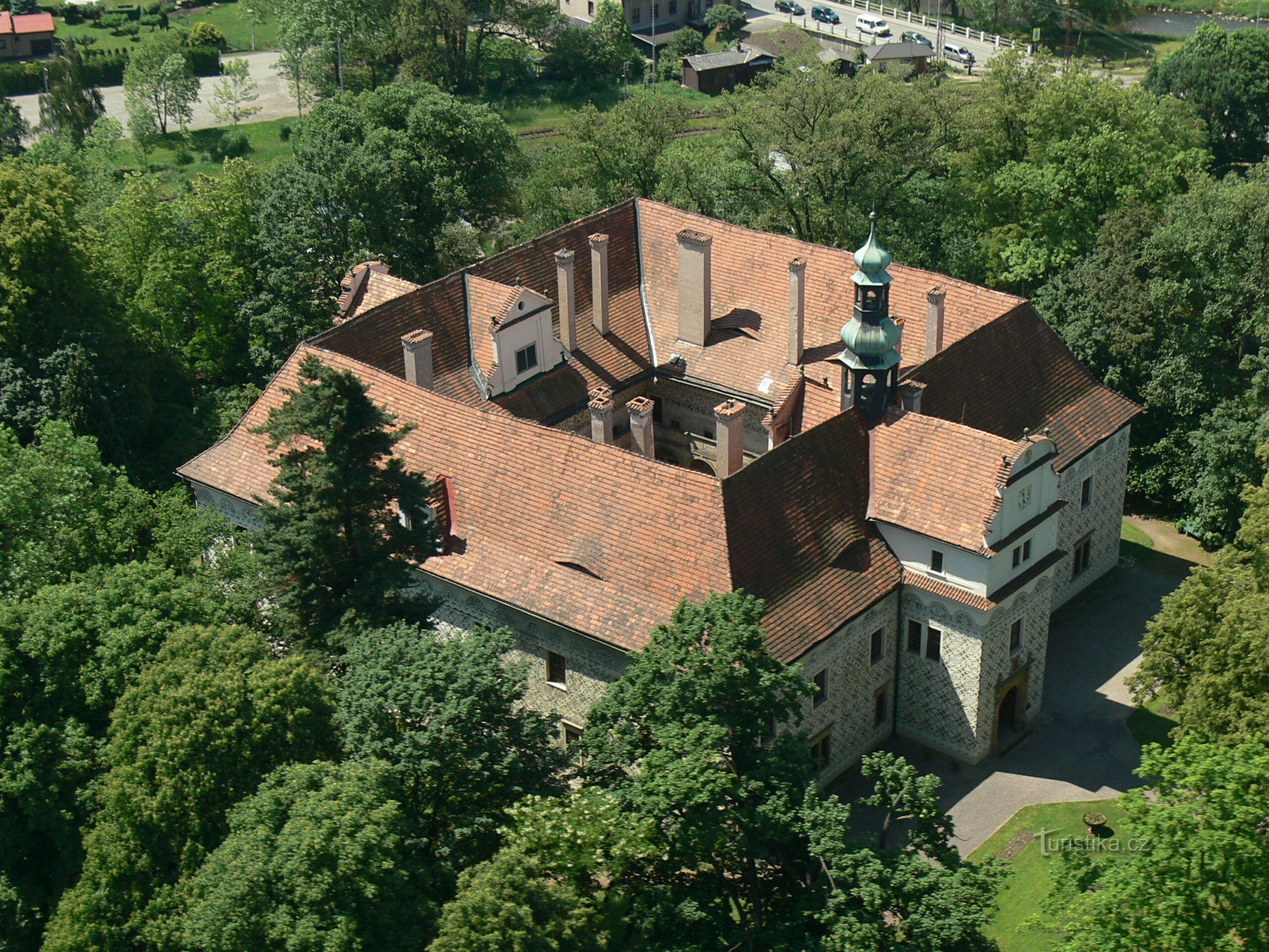 jedinečná sgrafita kobercového vzoru, pokrývající všechna vnější i vnitřní průčelí (k vidění pouze na zámku…