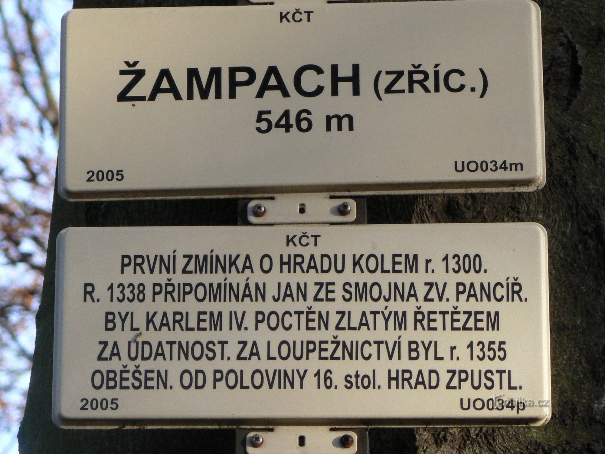 Zříceniny raně gotického hradu Žampach stojí na výrazném kuželovitém kopci nad stejnojmennou obcí v Pardubickém kraji, západně od Letohradu. Hrad byl hlubokým, ve skále vytesaným příkopem rozdělen na větší Předhradí a menší hrad. Obě části dnes spojuje lávka. Na Předhradí se dochovaly základy hranolové věže, zvané Bílá, zbytky obvodní hradby a archeology odkrytá spodní část kulaté věže. Na…