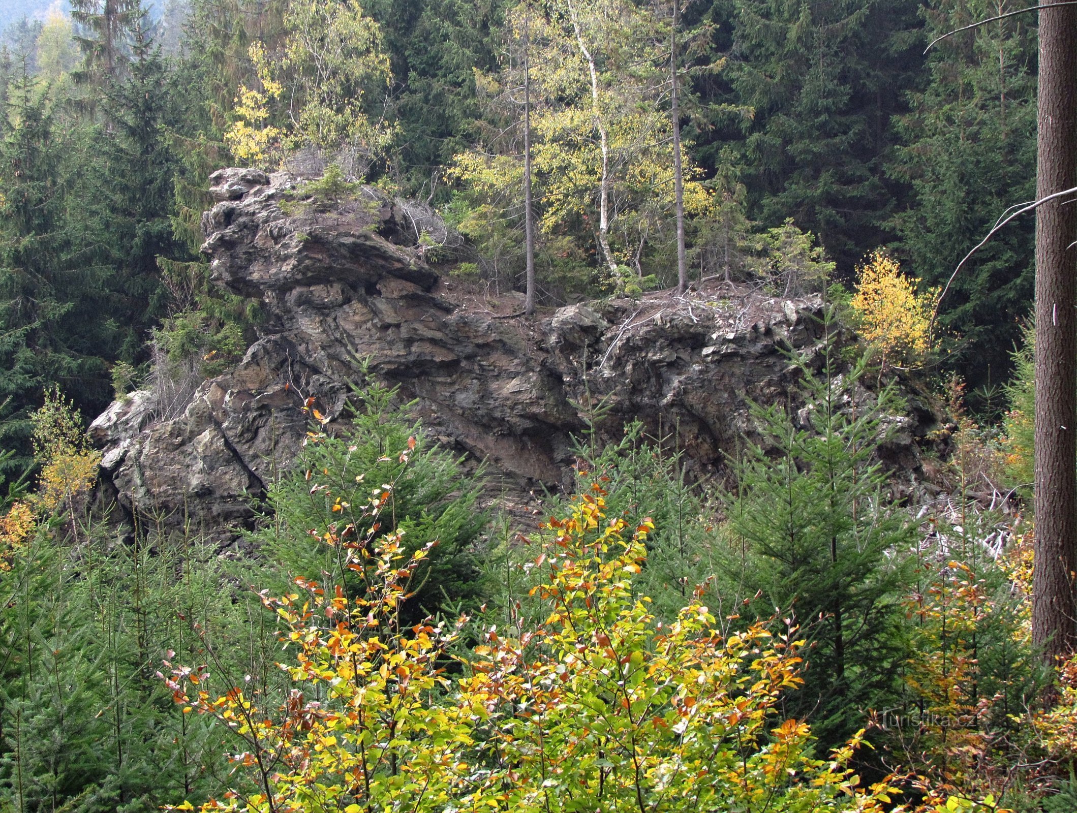 Od Ptačích skal to není ani půl kilometru k dalšímu výraznému skalnímu seskupení, které se nachází na samém úpatí vrchu Volyně a je v mapách označováno jako Mrtvý muž. Modrá turistická trasa k němu stoupá od lesní silničky, ale dotýká se až nejhořejšího okraje skalnatého pásu. Tady se nachází bizarní, divoké a neučesané skalisko, tak trochu připomínající australského ptakopyska. Níže ležící…