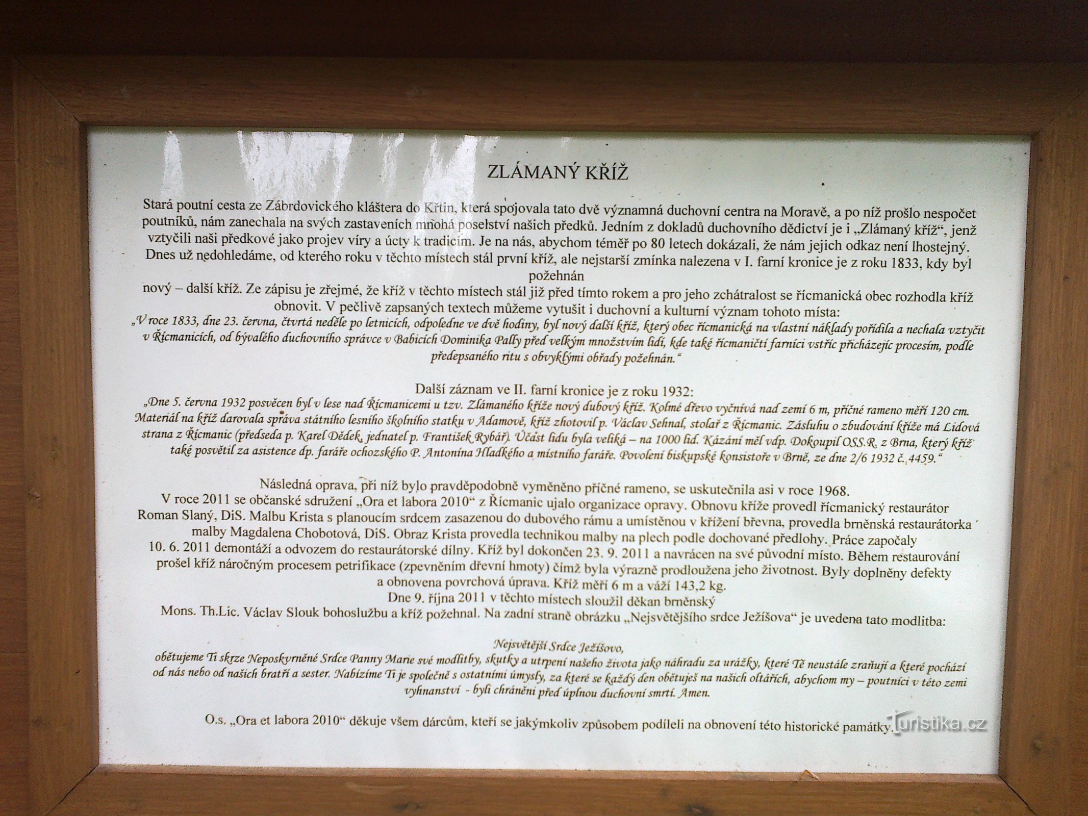 zlámaný kříž nad obcí Řícmanice