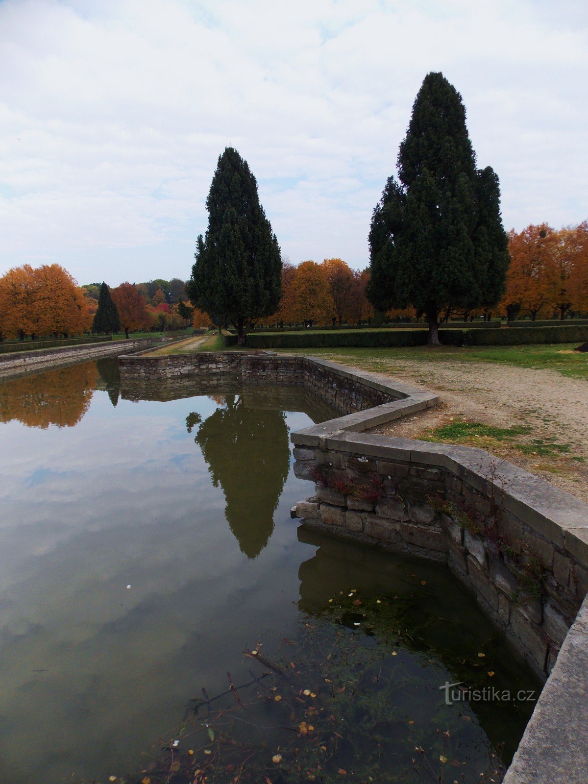 Zrcadlící se hladina vodních kanálů v zámeckém parku Holešov