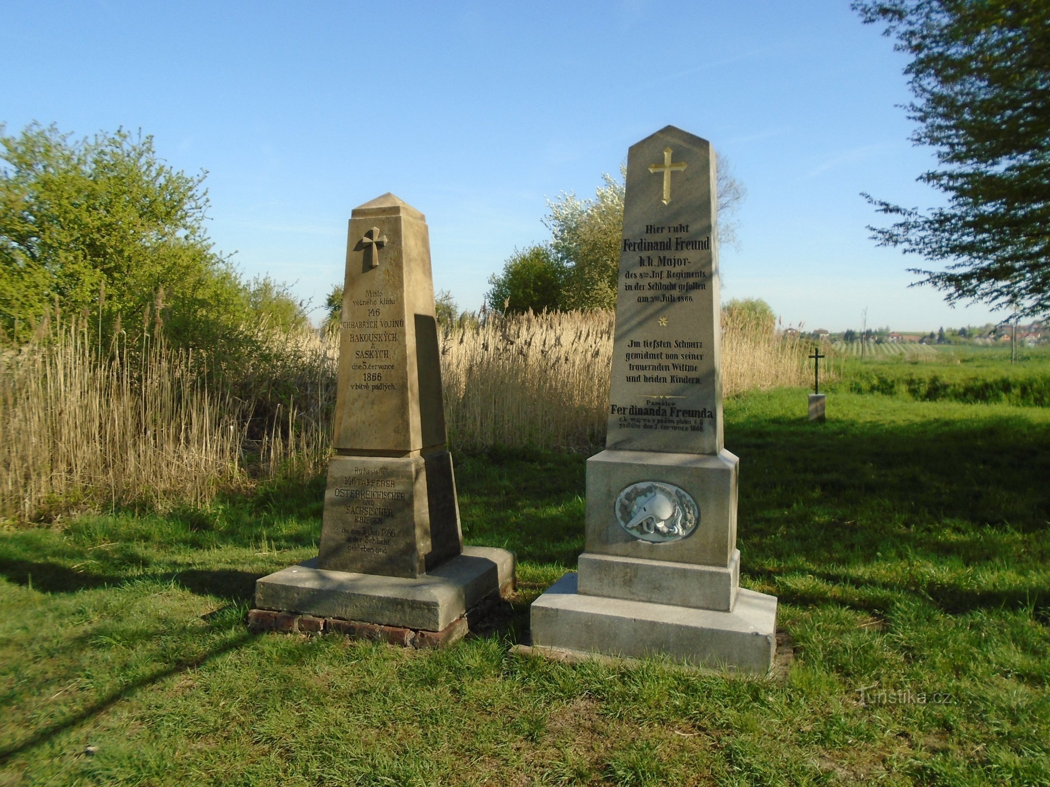 Nejvýznamnější pomník, který se nachází nedaleko Horního Přímu při cestě vedoucí ke studánce sv. Aloisia, byl zbudován nákladem důstojnického sboru 74. pluku v místech, kde roku 1866 se 74. pěší pluk krvavě utkal s nepřítelem a valnou část svého mužstva ztratil. Jde o vysoký jehlanec z hořického pískovce, který byl zhotoven podle návrhů Viléma Dokoupila, c. k. ředitele odborné školy v Hořicích a…