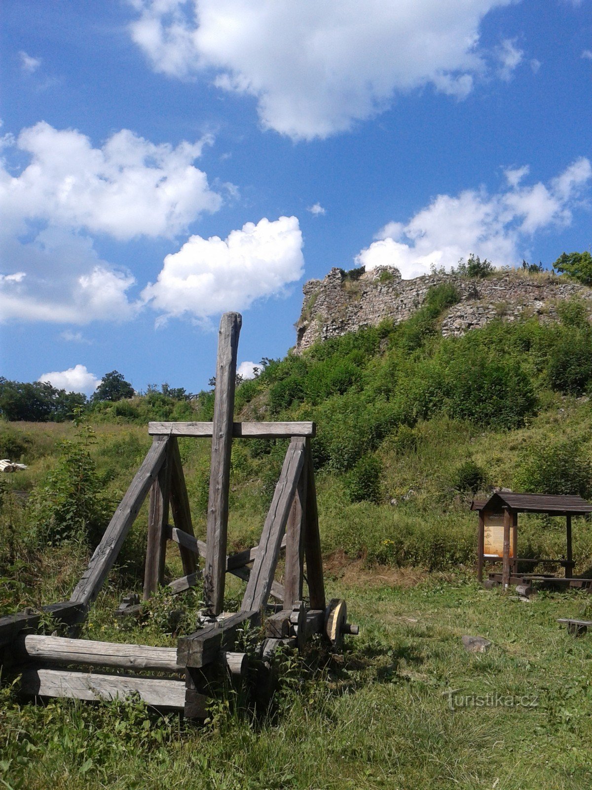 Zubštejn. Zřícenina hradu vzdálená cca 6 km od města Bytřice nad Pernštejnem. Auto lze zanechat na parkovišti na začátku obce Pivonice. Ukazatel na stromě hlásá, že odsud je to k hradu 0,5 km. Neinformuje však, že ten půlkilometr je lesem do vražedně strmého kopce, což je ve třiceti stupních a sandálech celkem žůžo! O téhle zřícenině jsme v životě neslyšeli ani jsme neměli tu čest spatřit…