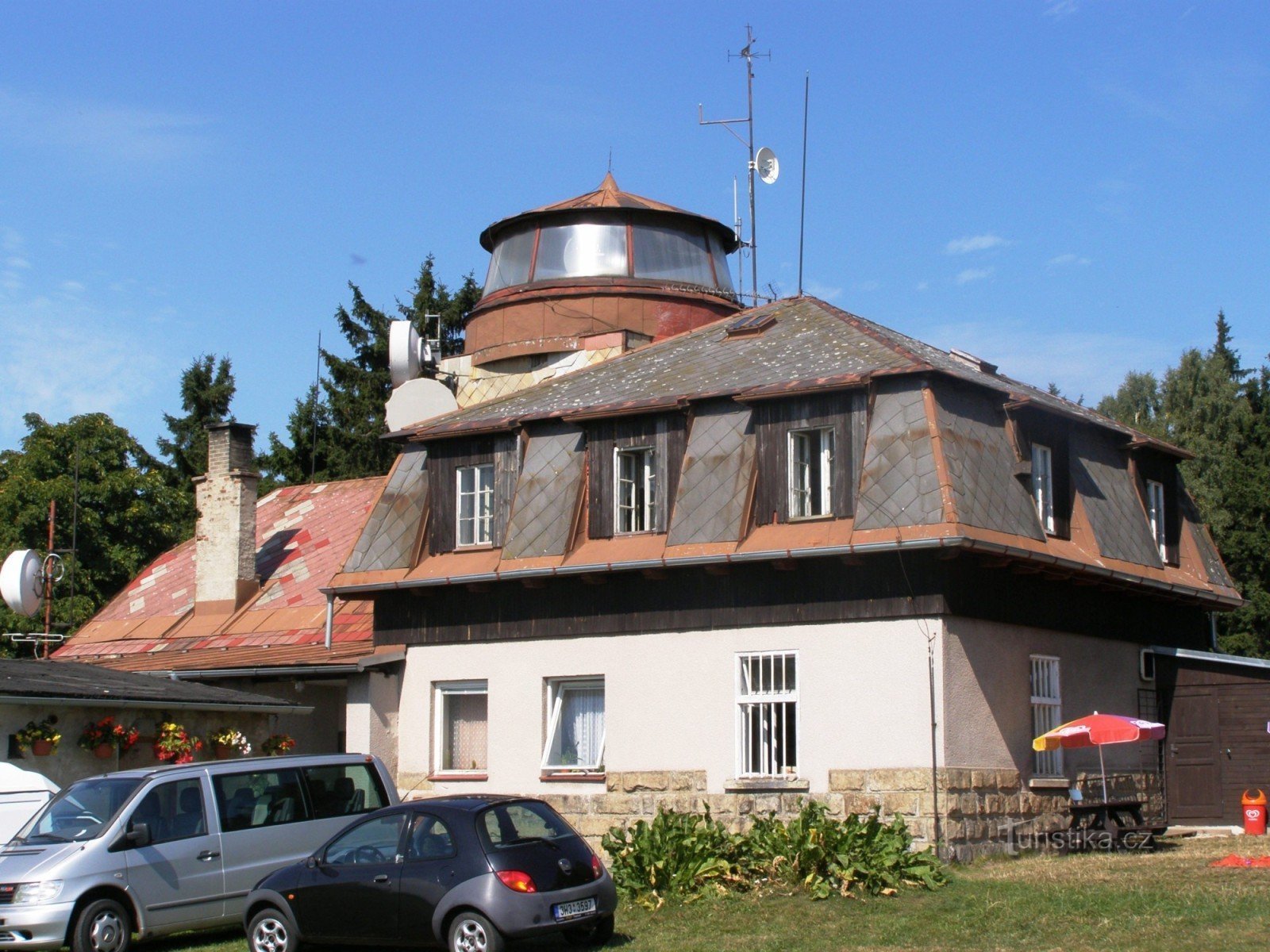 Historie chaty na vrcholu Zvičiny spadá do roku 1891, kdy zde majitel pozemku Josef Machek-Patcelt, postavil hostinec. Budova byla dřevěná, měla jen hostinskou místnost a malou Kuchyň, byla zařízena jen pro letní pobyt. Dne 12. srpna 1898 boudu zakoupila Národní jednota severočeská se záměrem boudu opravit a přistavět rozhlednu a pokojíky na přespání. Německé obyvatelstvo se vzepřelo a provedení…