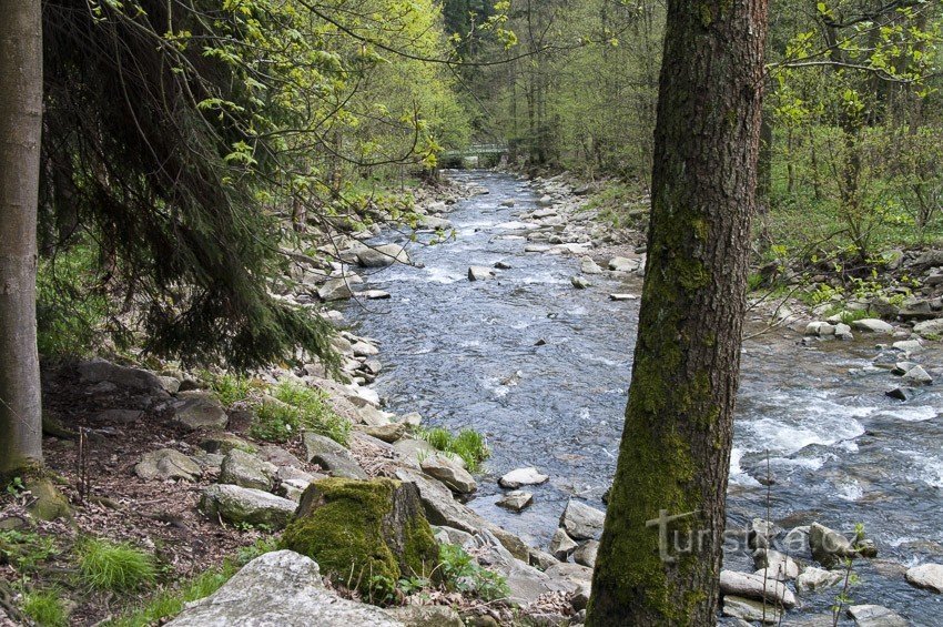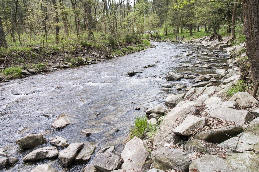 Jedeme-li z Hanušovic proti proudu Moravy, v zatáčce před odbočkou k Vojtíškovu (obráceně až za), je to tam kde je silnice přimknuta ke skále nad levým břehem řeky, najdeme malou tabulku, upozorňující na zajímavý říční kilometr. Pokud tedy kartografové a geometři nelžou, jsme na 333,3km řeky. Délky řek se neměří od pramene, ale od jejich ústí (tak jak se asi i v minulosti oblasti objevovaly proti…