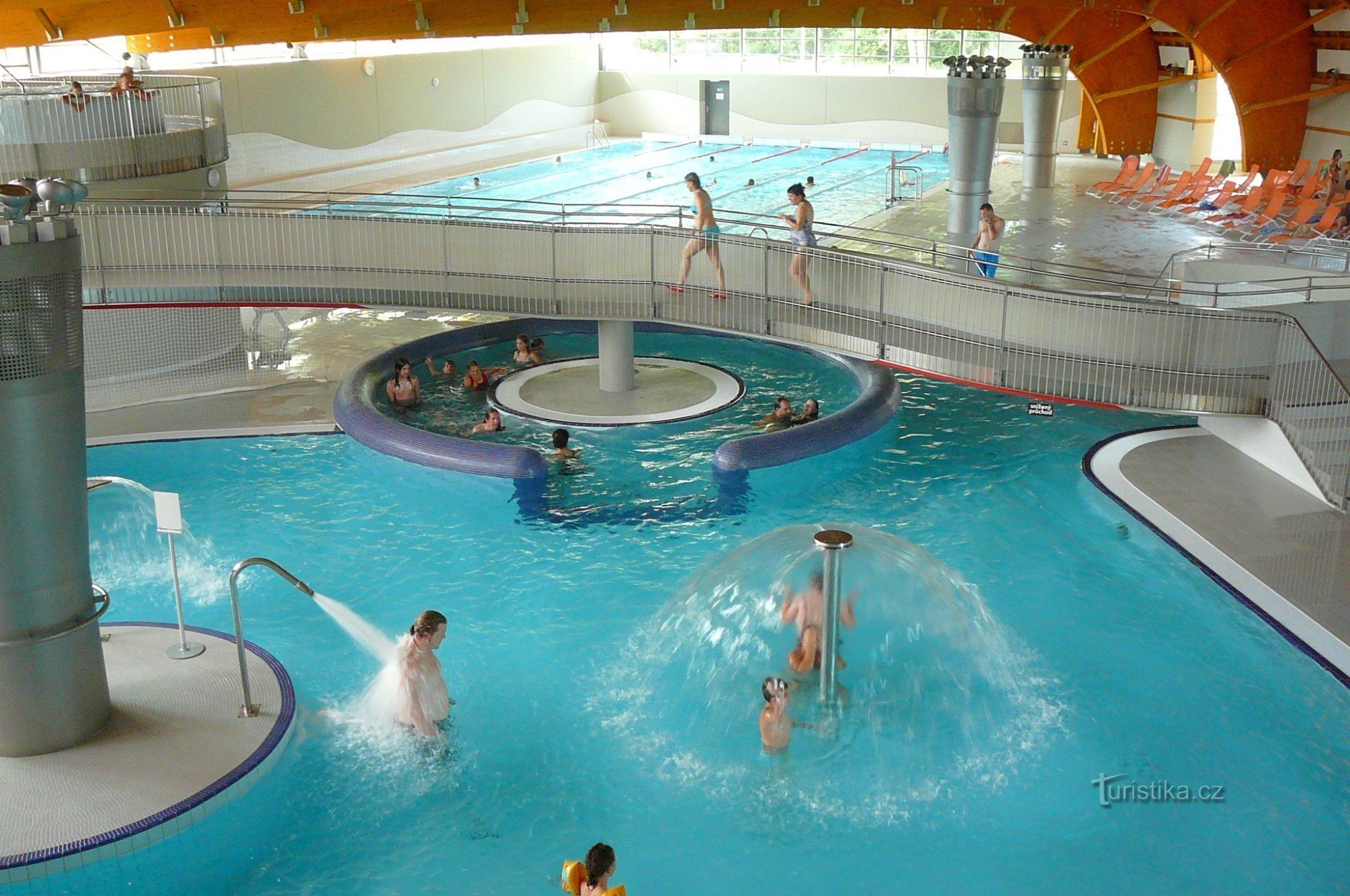 Součástí krytého aquaparku je plavecký bazén 25 m, dětský bazén s vodním hřibem, rekreační bazén s vodními tryskami, hřibem a divokou řekou, vířivka, tobogán o délce 90 m a venkovní bazén na nekryté střešní terase. Na terase se můžete v teplém počasí také…