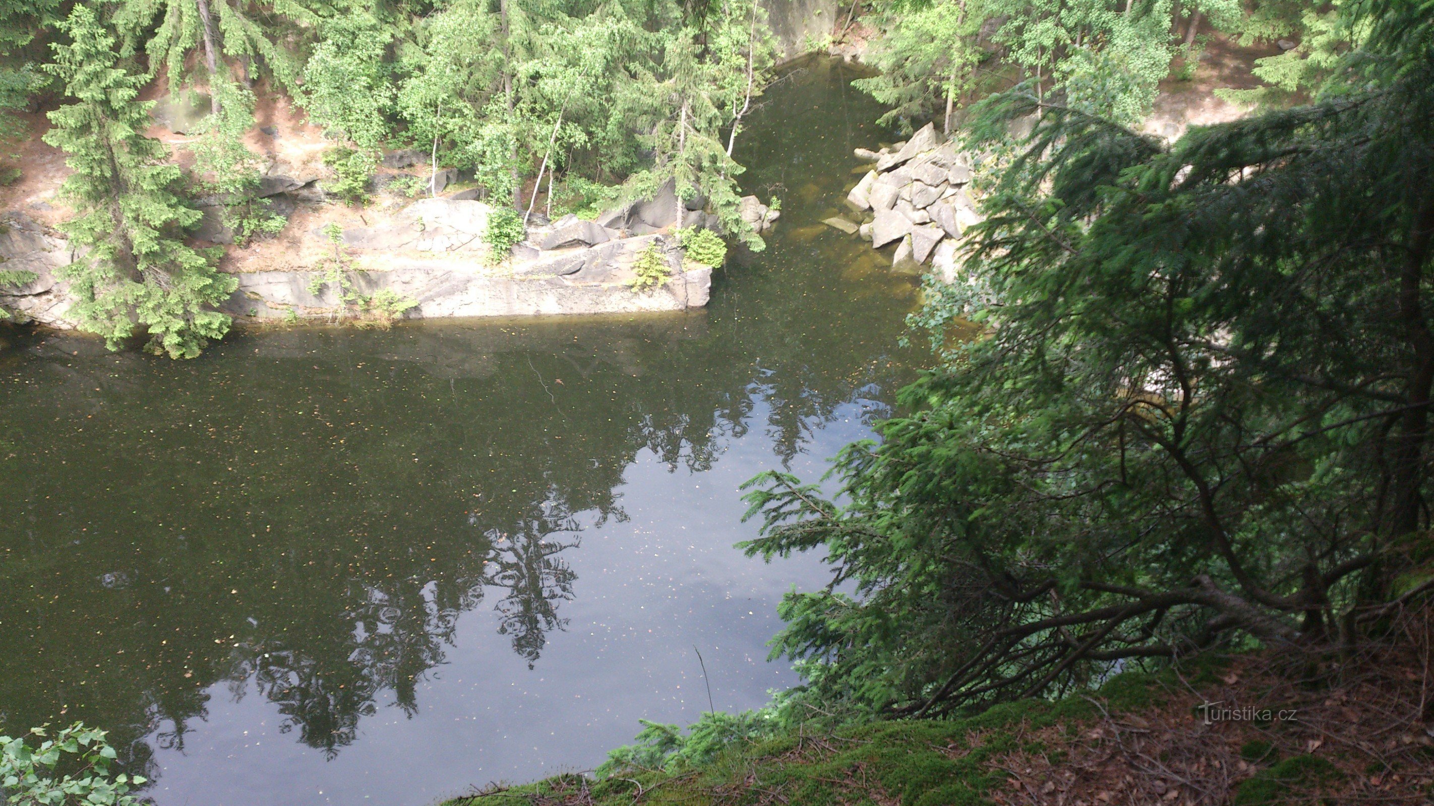 Zajímavý velmi romantický zatopený lom.Dostanete se sem buď z osady Zelená Hora, nebo můžete odbočit z červené značky (Lázně Jeseník -Prudký potok - Kaltenštejn - Žulová)vlevo kousek za Mariiným pramenem.